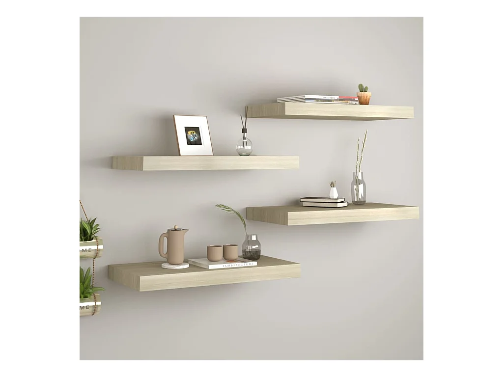 Étagères murales murales 4 pcs chêne 50x23x3,8 cm MDF OFR62017 BonneVie Meuble