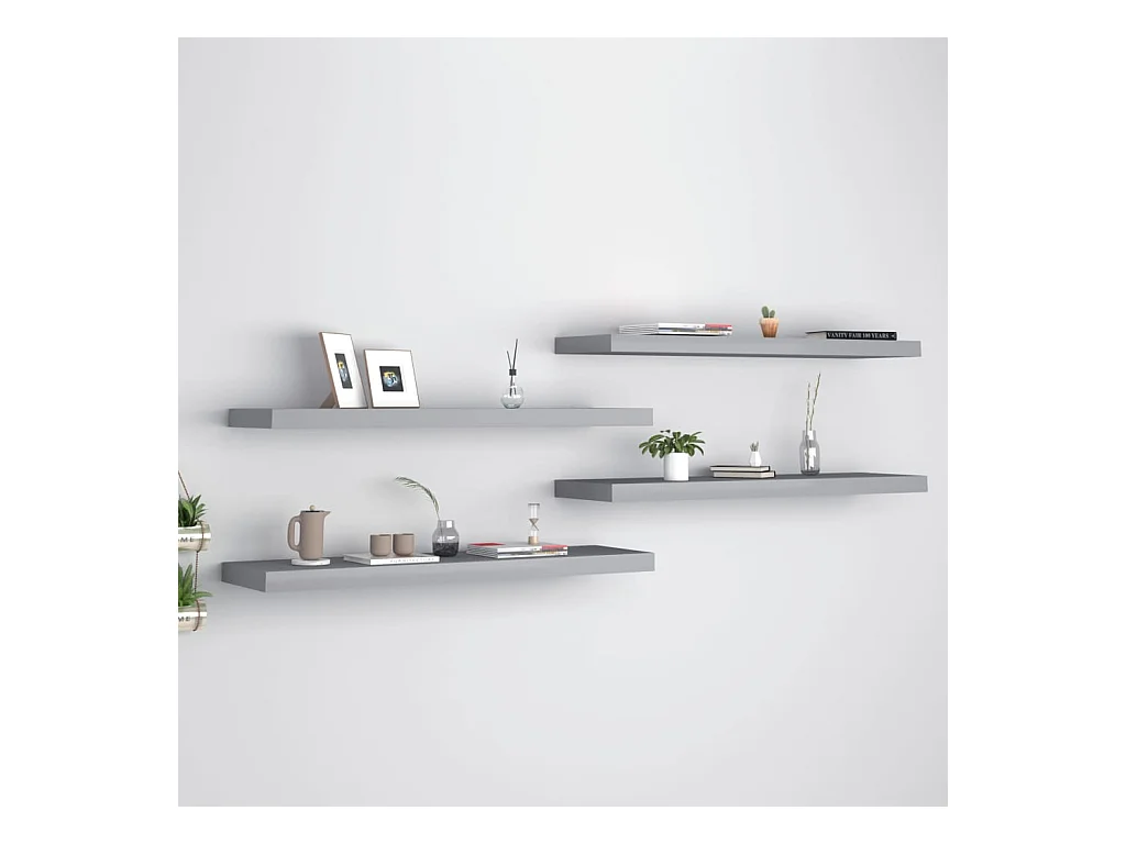 Étagères murales murales 4 pcs gris 90x23,5x3,8 cm MDF OFR71027 BonneVie Meuble