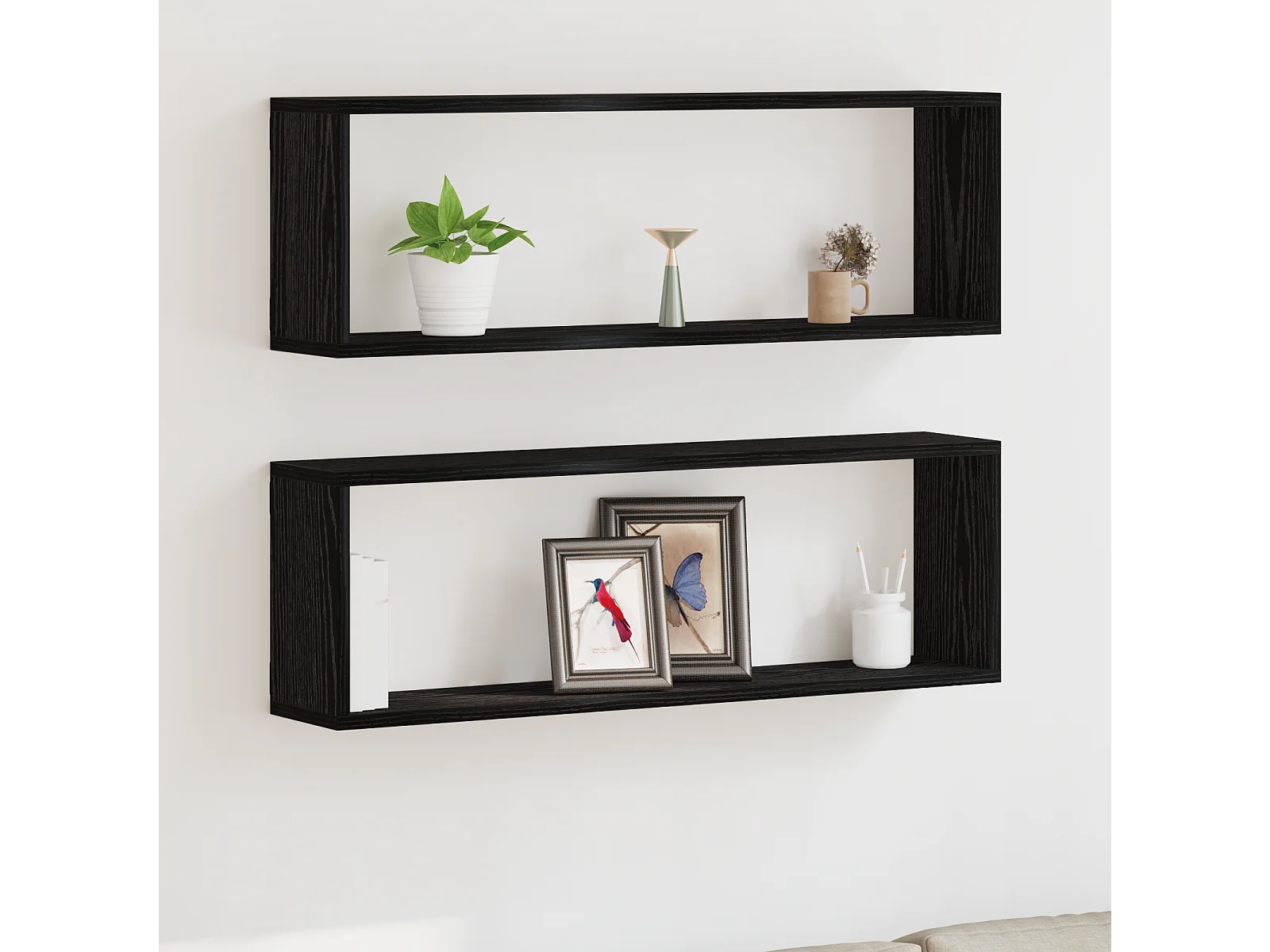 Étagères cube murales 2 pcs noir 100x15x30 cm bois d'ingénierie