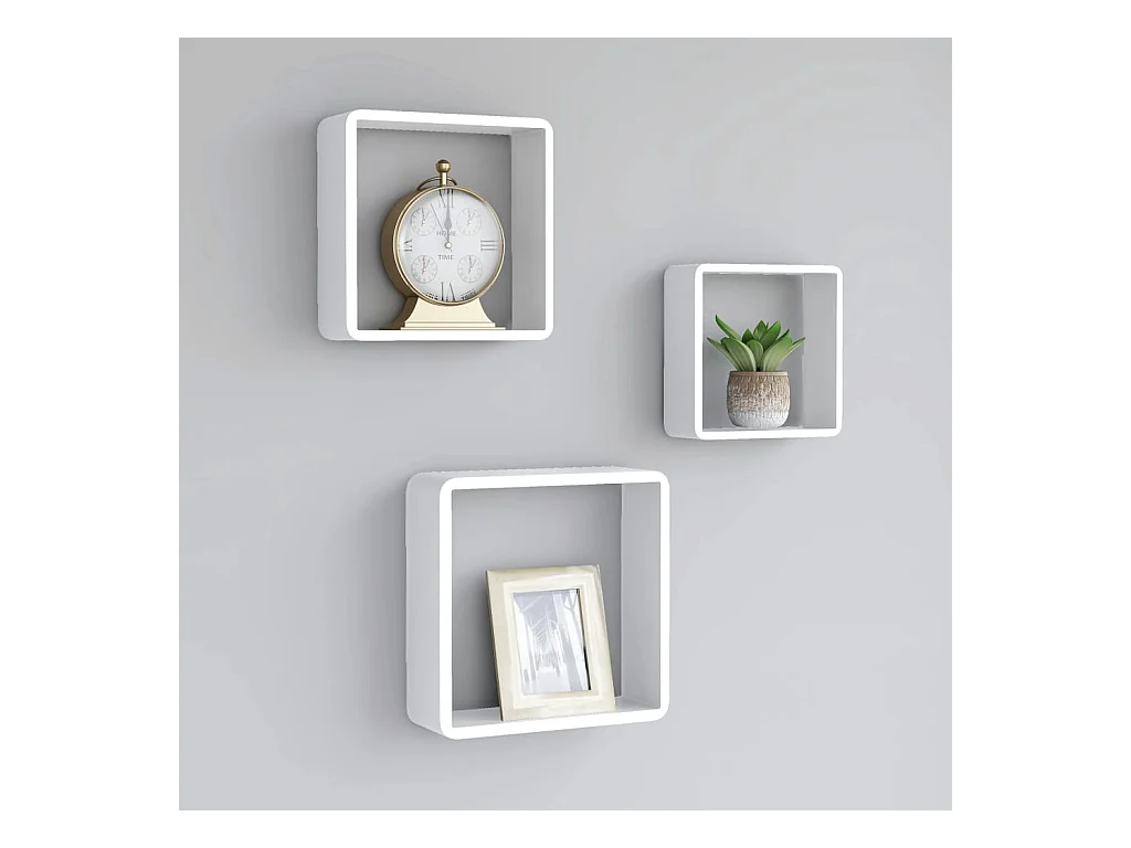 Étagères murales sous forme de cube 3 pcs Blanc MDF