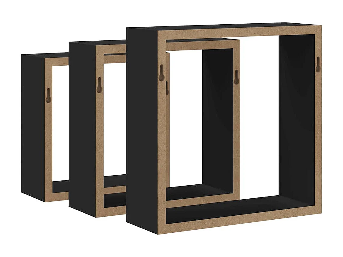 Étagères murales sous forme de cube 3 pcs Noir MDF