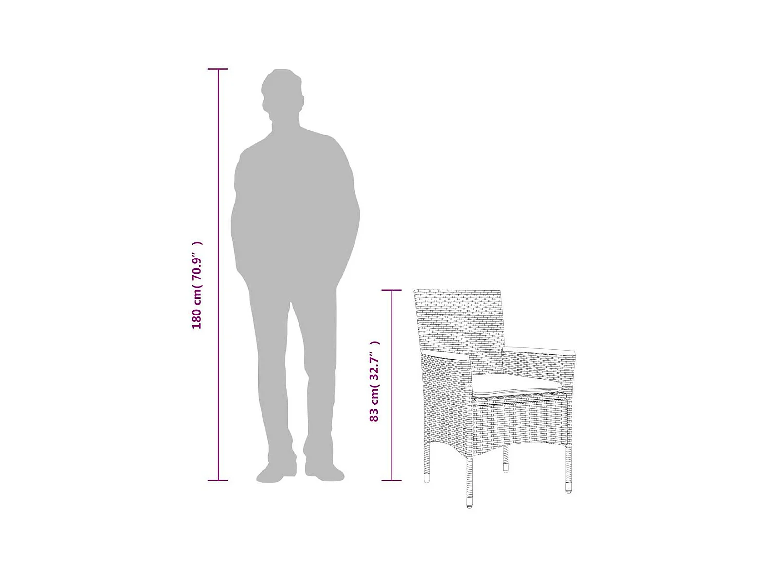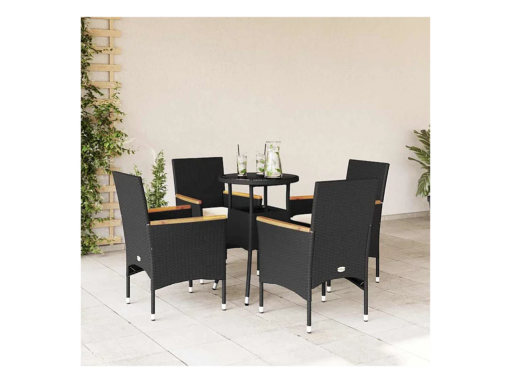 Eudes Ensemble à manger de jardin et coussins 5 pcs noir rotin verre