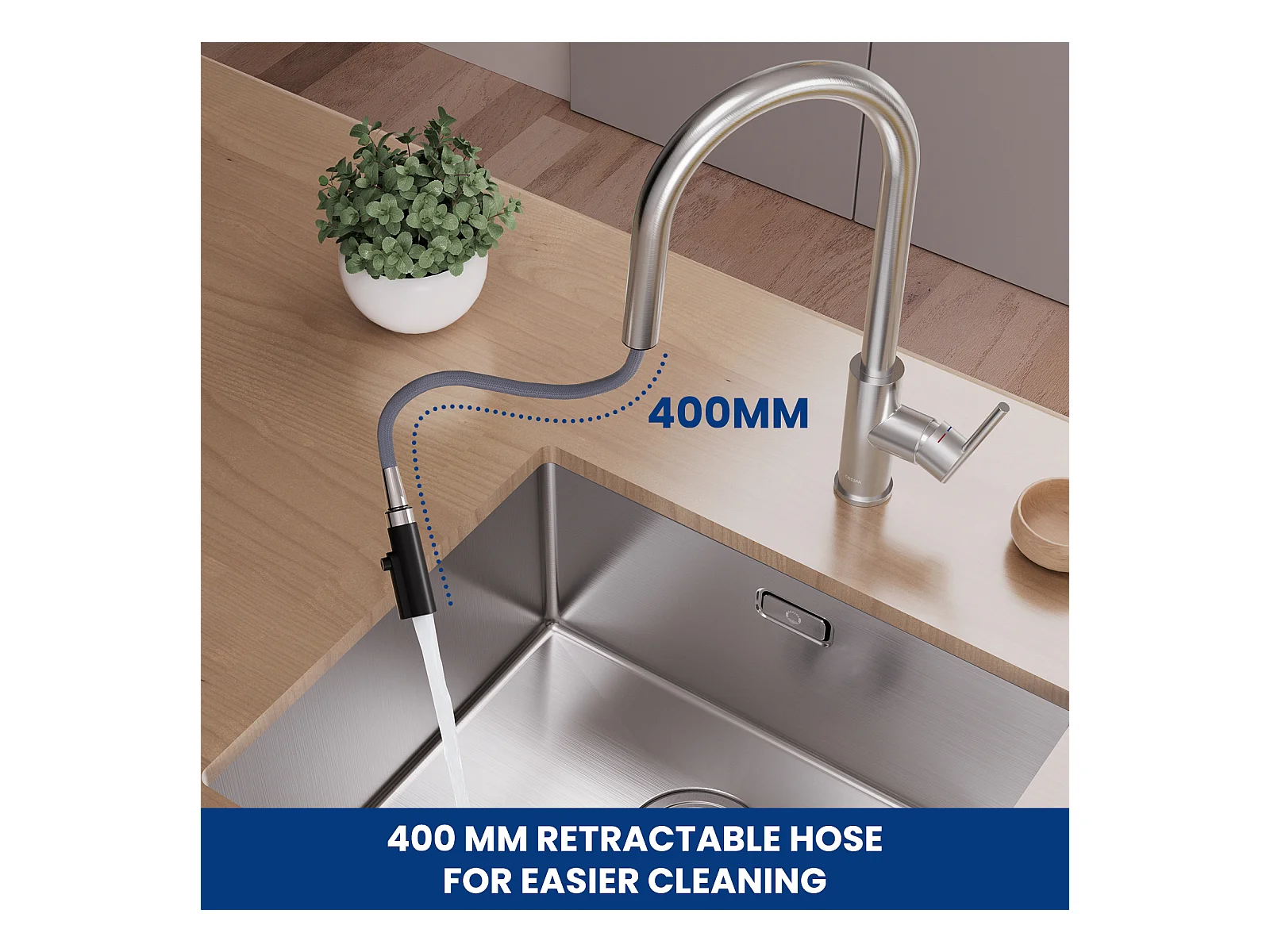 Cecipa max Robinet de Cuisine Rabattable 2 Jets aux Choix, Mitigeur Evier Repliable en Inox devant Fenêtre, Robinet Évier Pivotant à 360º,EU Modèle
