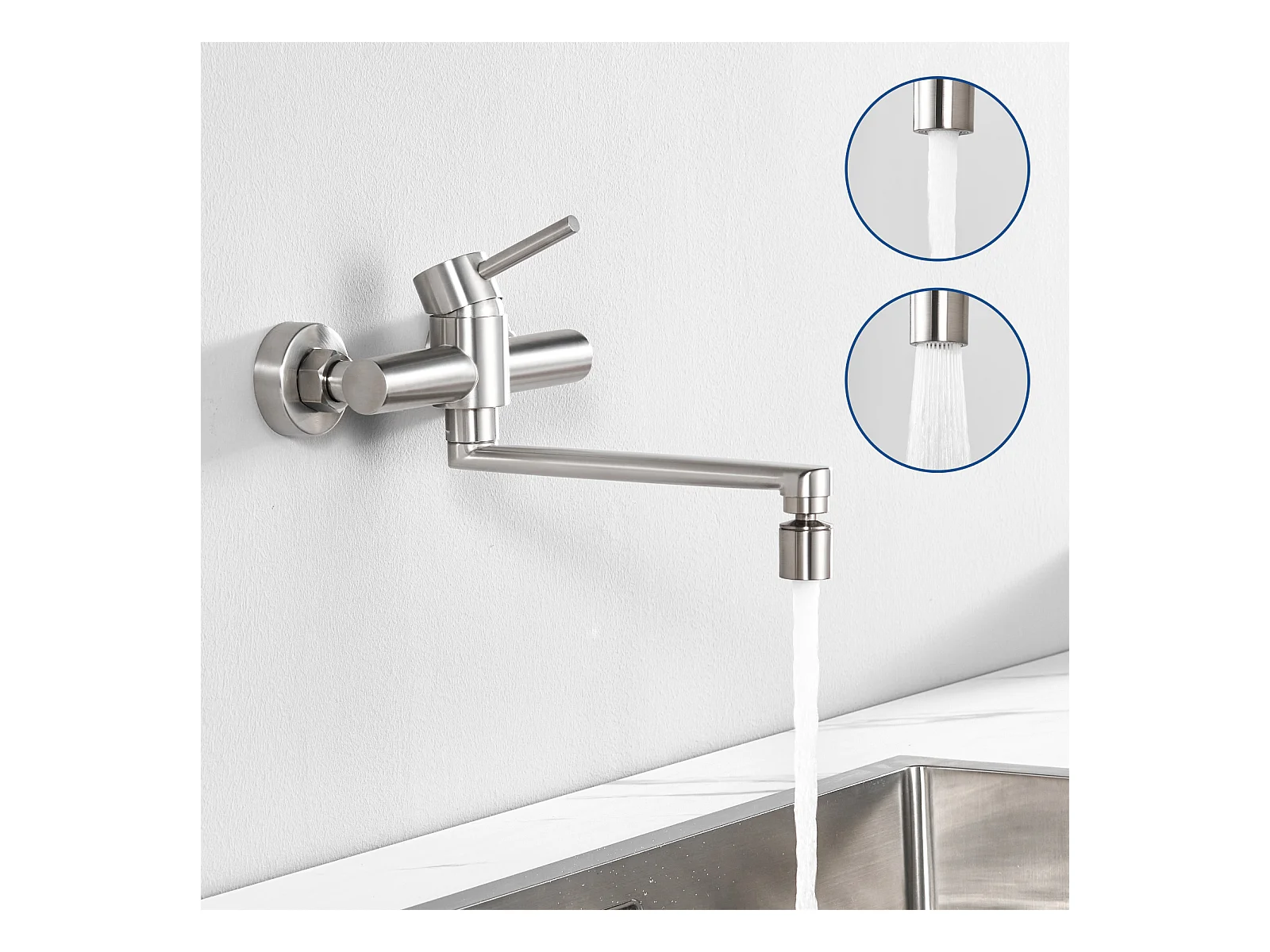 NETTLIFE Robinet de cuisine avec pomme de douche extensible, à haute pression, en acier inoxydable à jet double et pivotant à 360 °, Nickel