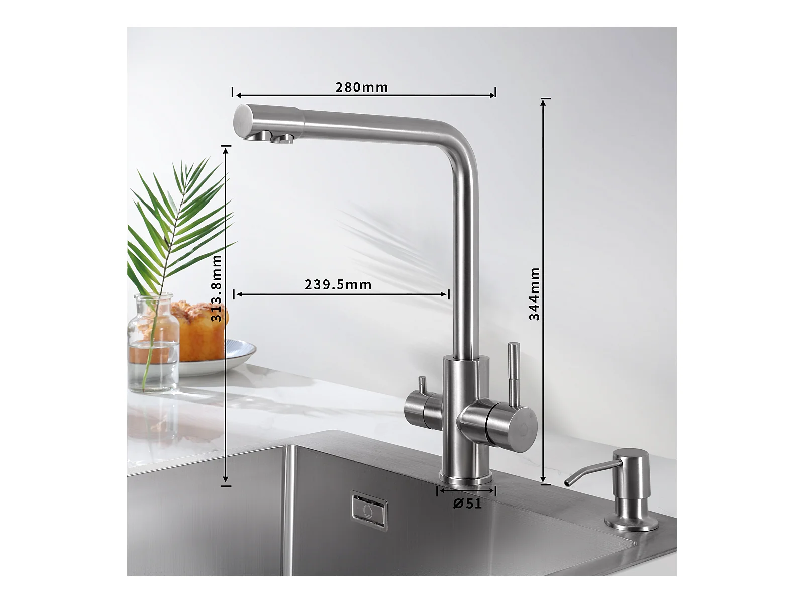 Robinet de cuisine extractible NETTLIFE - Mitigeur d'évier 360° avec douchette en acier inoxydable, 2 modes de pulvérisation
