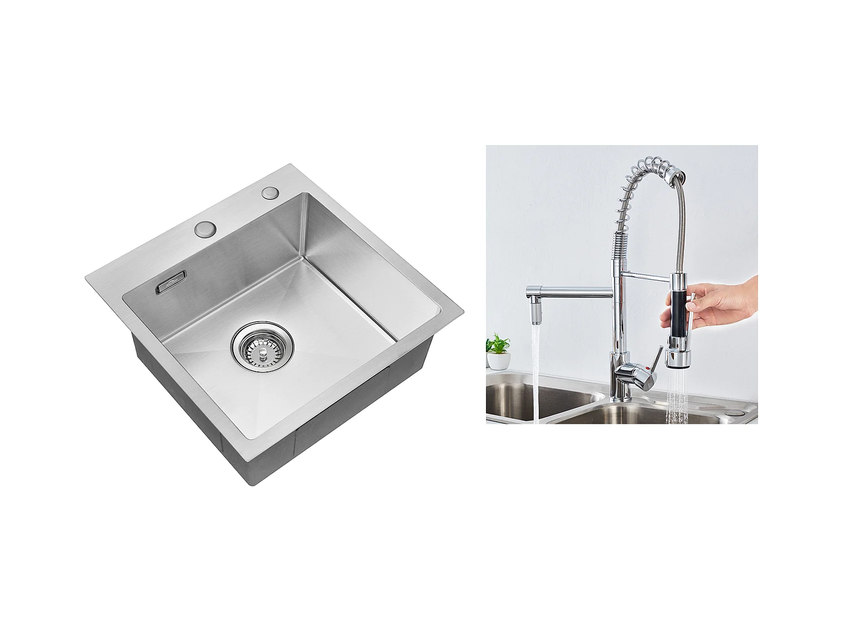Évier Cuisine 1 Bac 45x45CM Acier Inoxydable 304 ,encastré et à Poser+Robinet de Cuisine Flexible Bec Haut Orientable