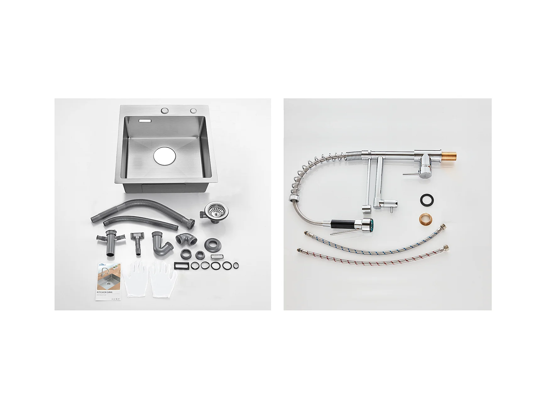 Évier Cuisine 1 Bac 45x45CM Acier Inoxydable 304 ,encastré et à Poser+Mitigeur Cuisine avec Douchette Extractible Rotatif 360° ,Chromé
