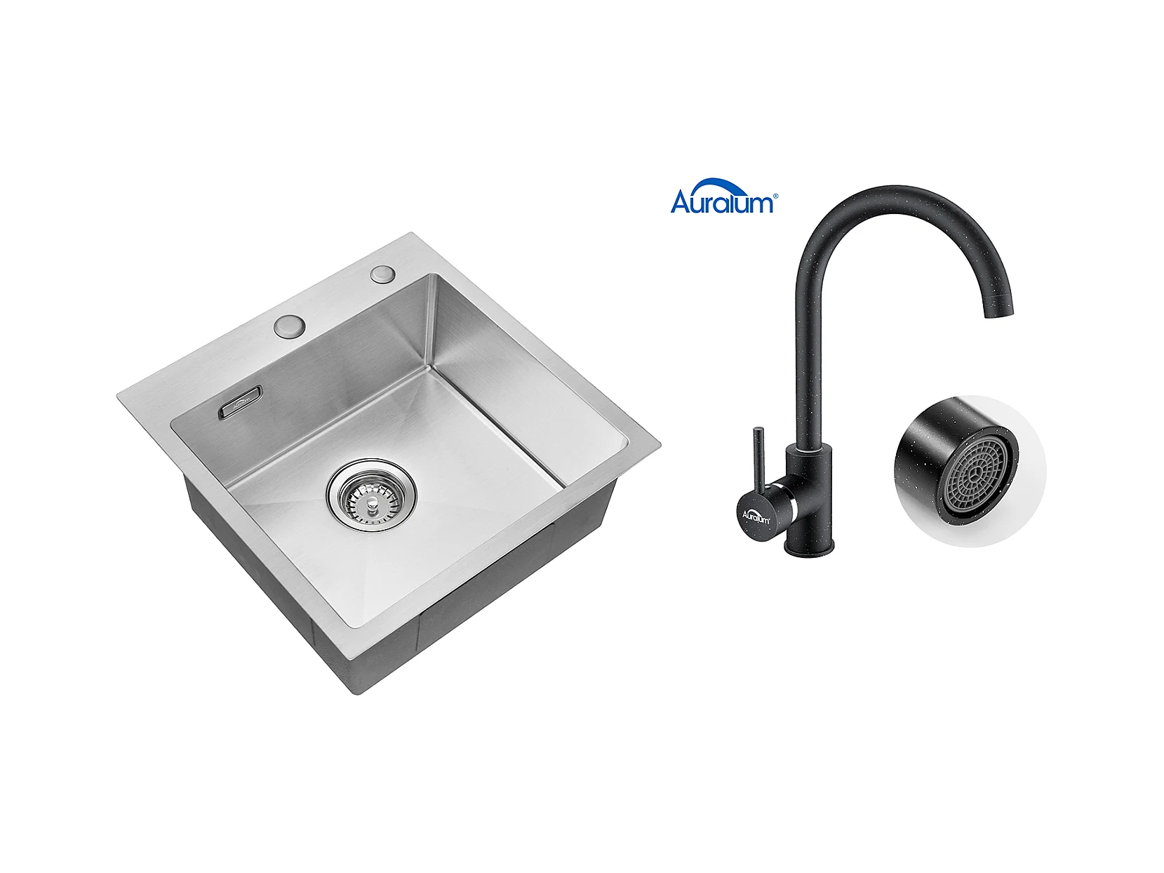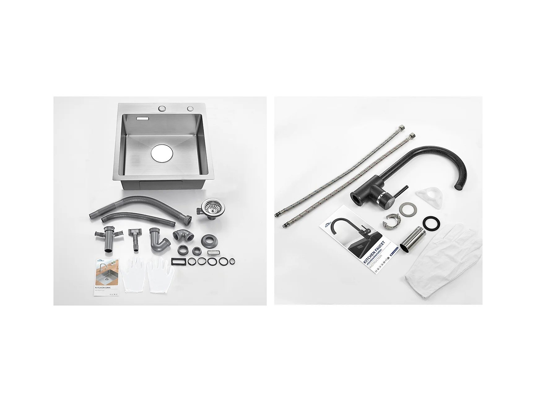Évier de Cuisine 1 Bac 45x45CM Acier Inoxydable 304 , encastré et à Poserr+ Robinet de Cuisine Noir avec Douchette Extractible