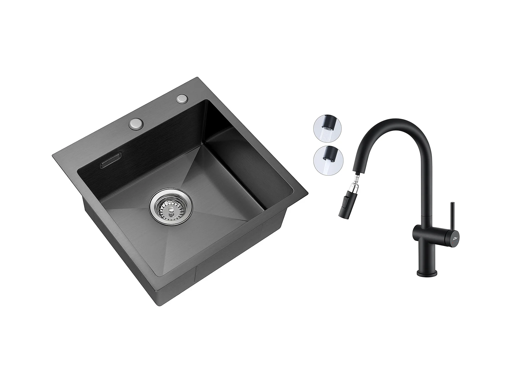 Évier Cuisine Noir 1 Bac 45x45CM Acier Inoxydable 304 ,encastré et à Poser+ Robinet de Cuisine Inox Extractible Rotatif à 360 °
