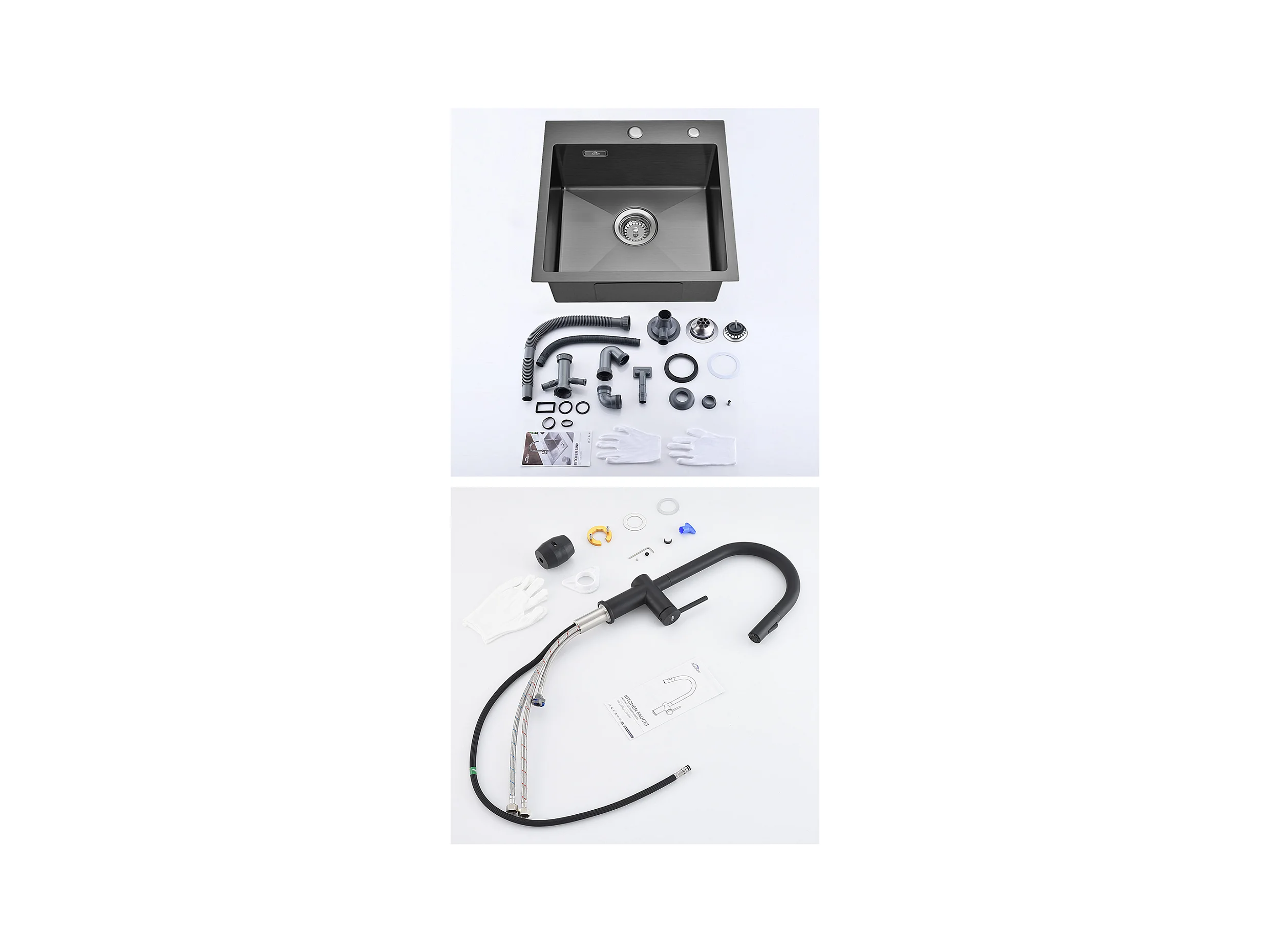 Évier Cuisine Noir 1 Bac 45x45CM Acier Inoxydable 304 ,encastré et à Poser+Mitigeur Cuisine en Acier Inox 304 Rabattable Pivotant à 3,EU Modèle