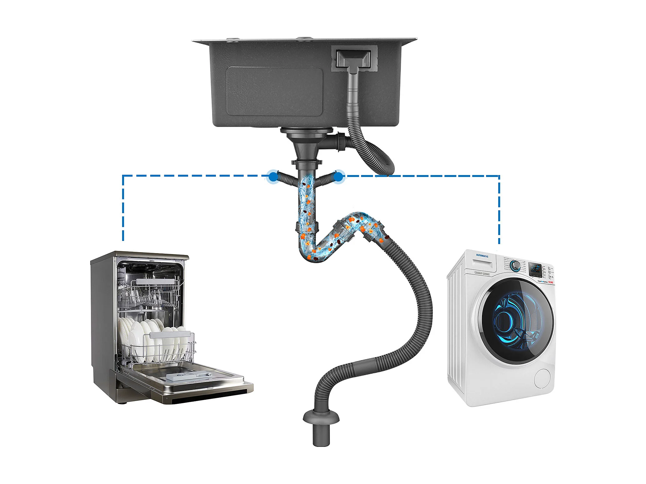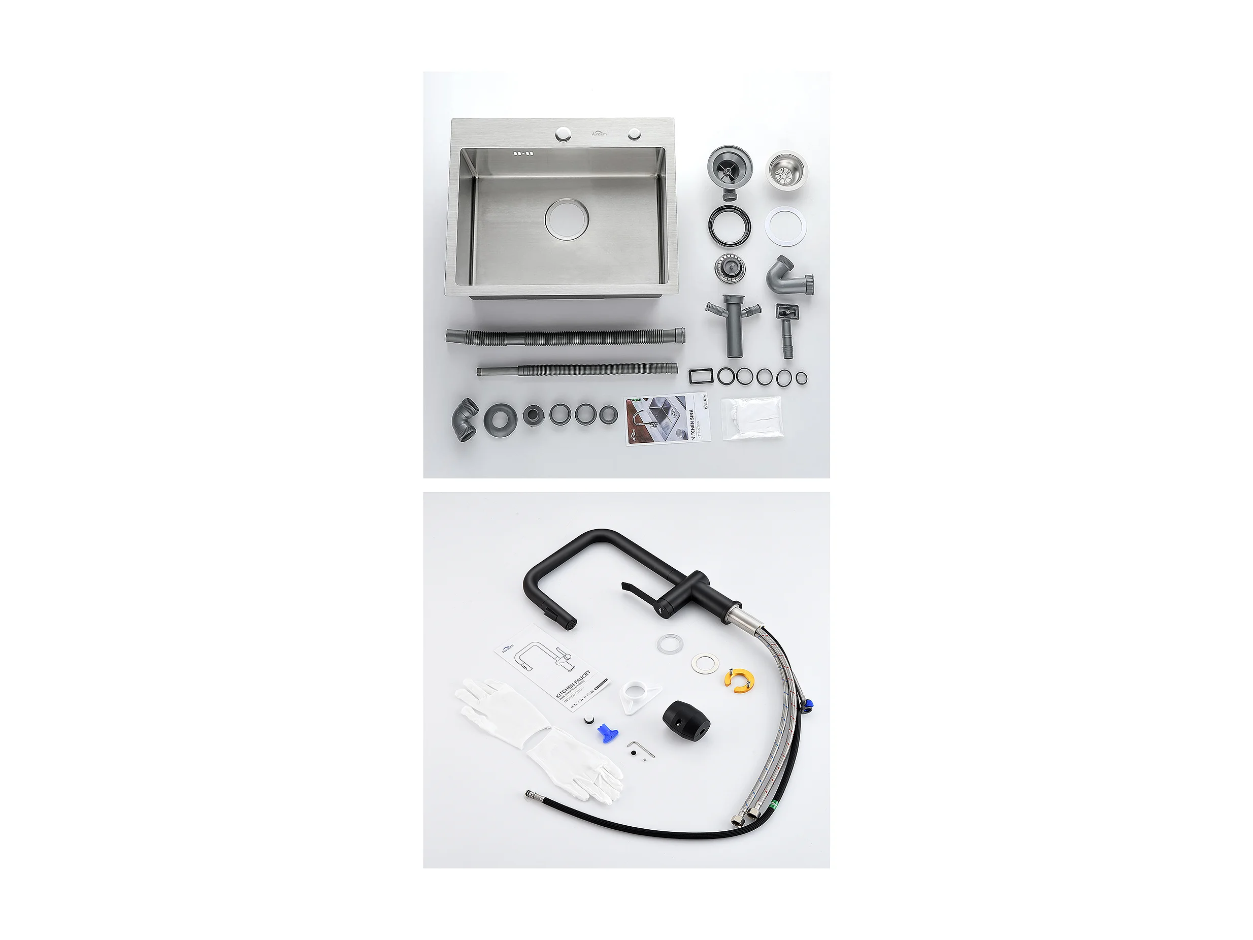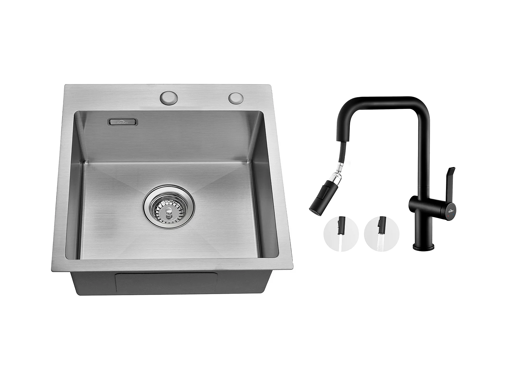 Évier Cuisine 1 Bac 45x45CM Acier Inoxydable 304 ,encastré et à Poser +robinet de cuisine rétractable à deux fonctions, Noir,EU Modèle