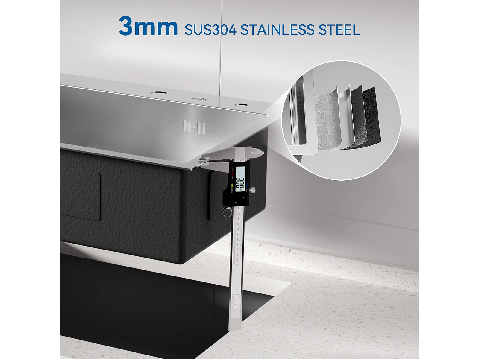 Évier Cuisine 1 Bac 55*45CM Évier Encastré et à Poser avec Distributeur de Savon+Robinet Cuisine Rotatif 360°,Noir avec point blancs