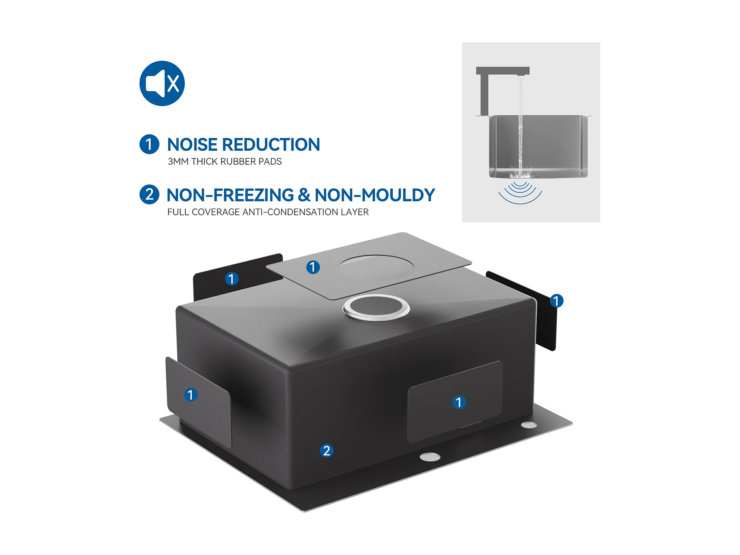 Évier Cuisine 58*45*18CM, Lavabo Cuisine 1 Bac avec Égouttoir Enroulable et Distributeur de Savon, Inox brossé, Montage à Encastrer ou à Fleur