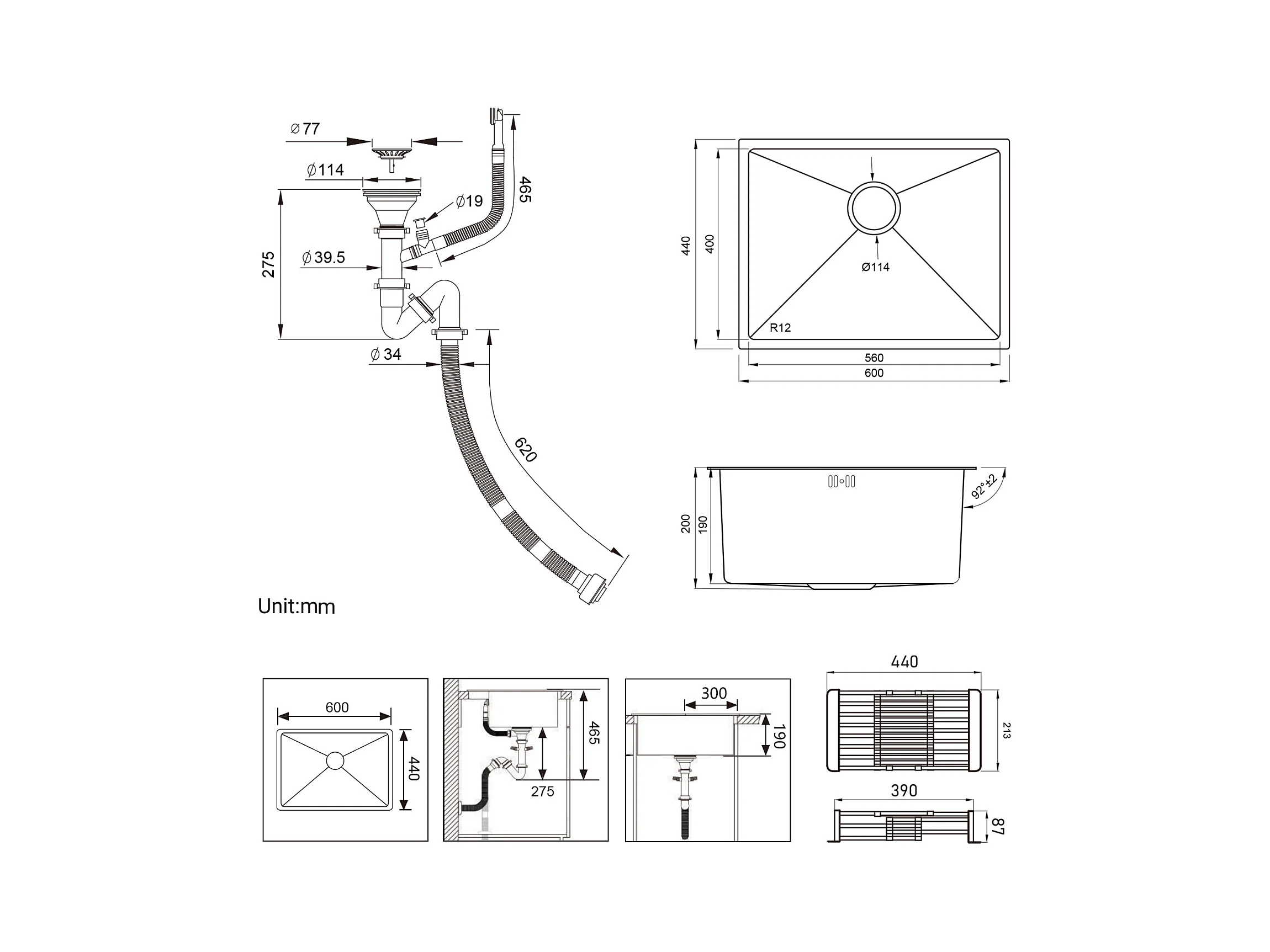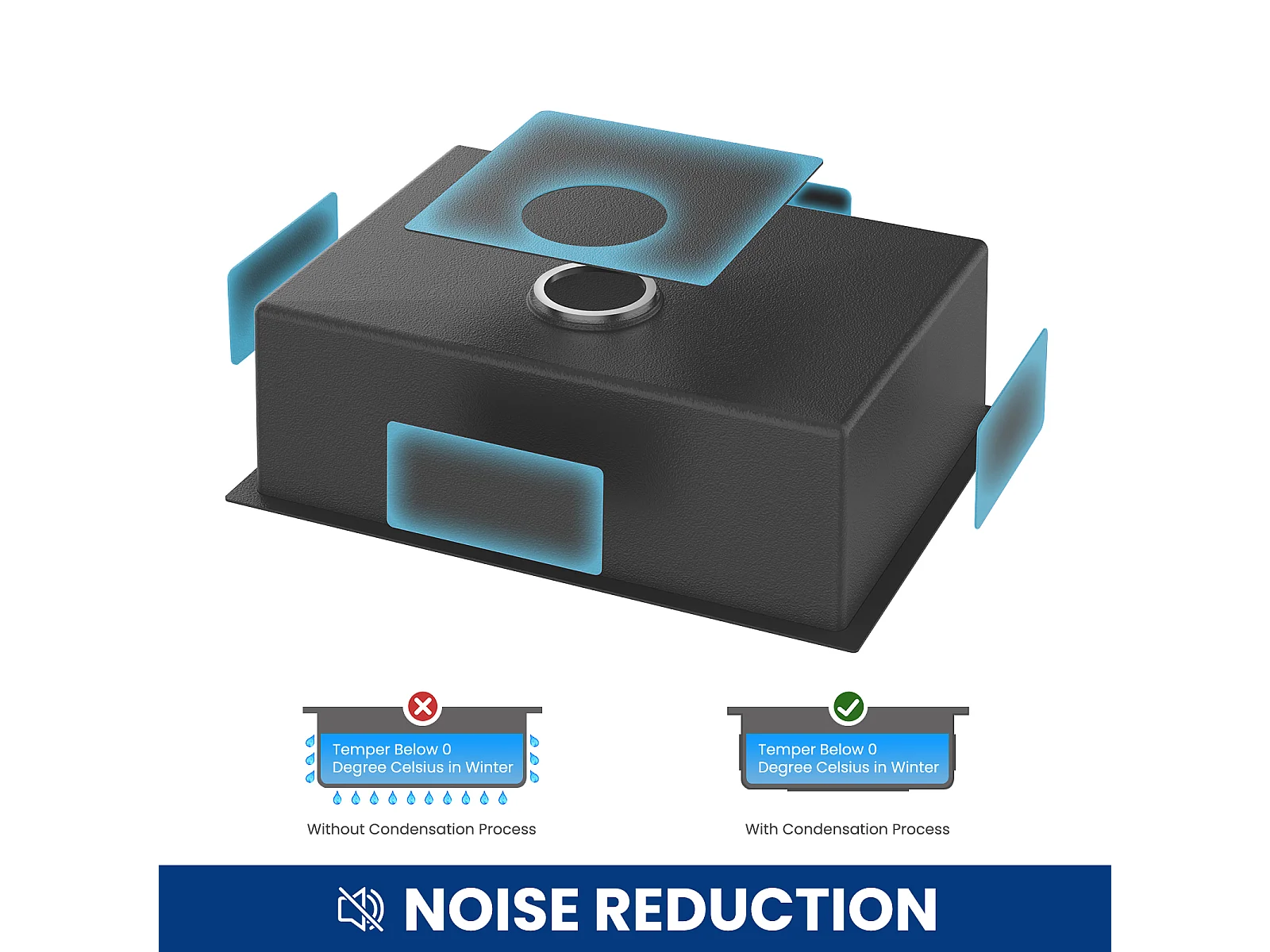 Évier Cuisine 1 Bac 60*44*20CM,inox 304,à Encastrer/sous-plan avec Panier Drainage,Nano+Robinet Cuisine Noir avec Douchette Extractible,2 Jets