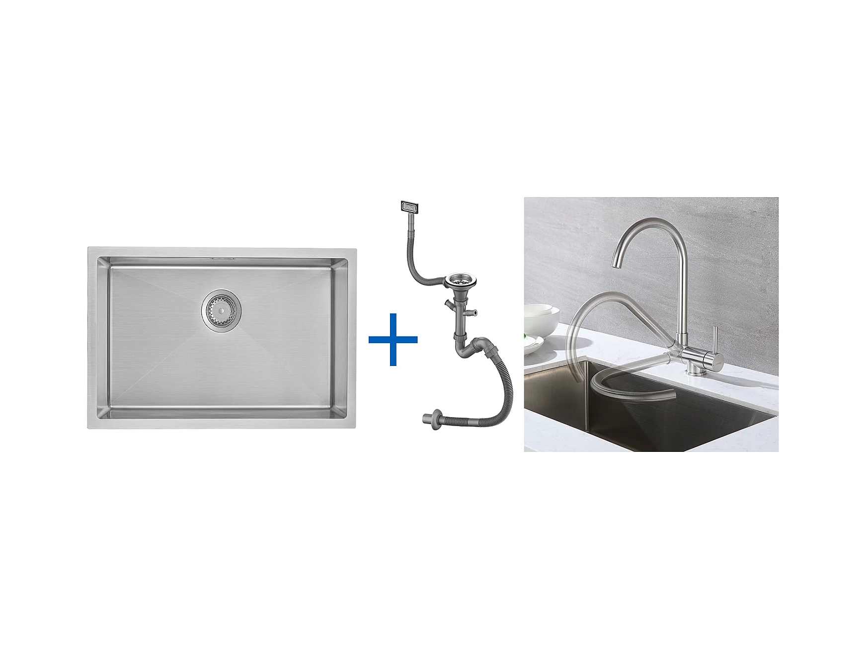 Évier Cuisine 1Bac 70*44*19CM,à Encastrer/Fleur/Sous-Plan,avec Siphon/Trop-Plein+MitigeurCuisine,Douchette Extractible,2 Modes,EauFroide/Chaude,Brossé