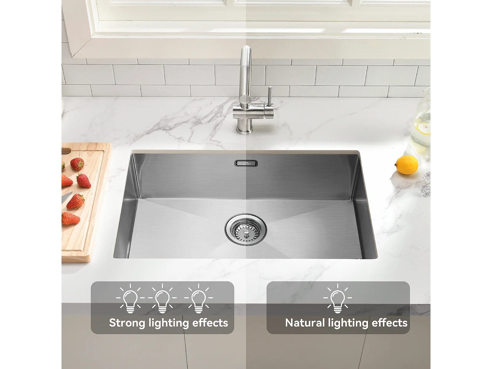 AuraLum Max Évier Cuisine 1 Bac 70*44*19CM Évier Montage à Encastrer,à Fleur/Sous-Plan Acier Inox 304 Évier Brossé avec Siphon/Trop-Plein,EU Modèle