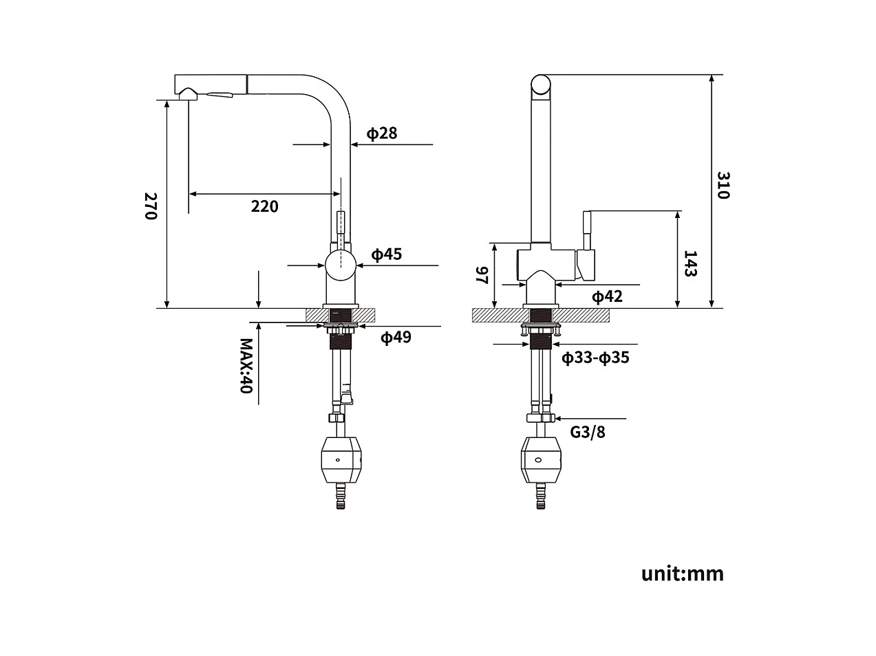 Robinet de cuisine en acier inoxydable - Noir mat - ROMILY