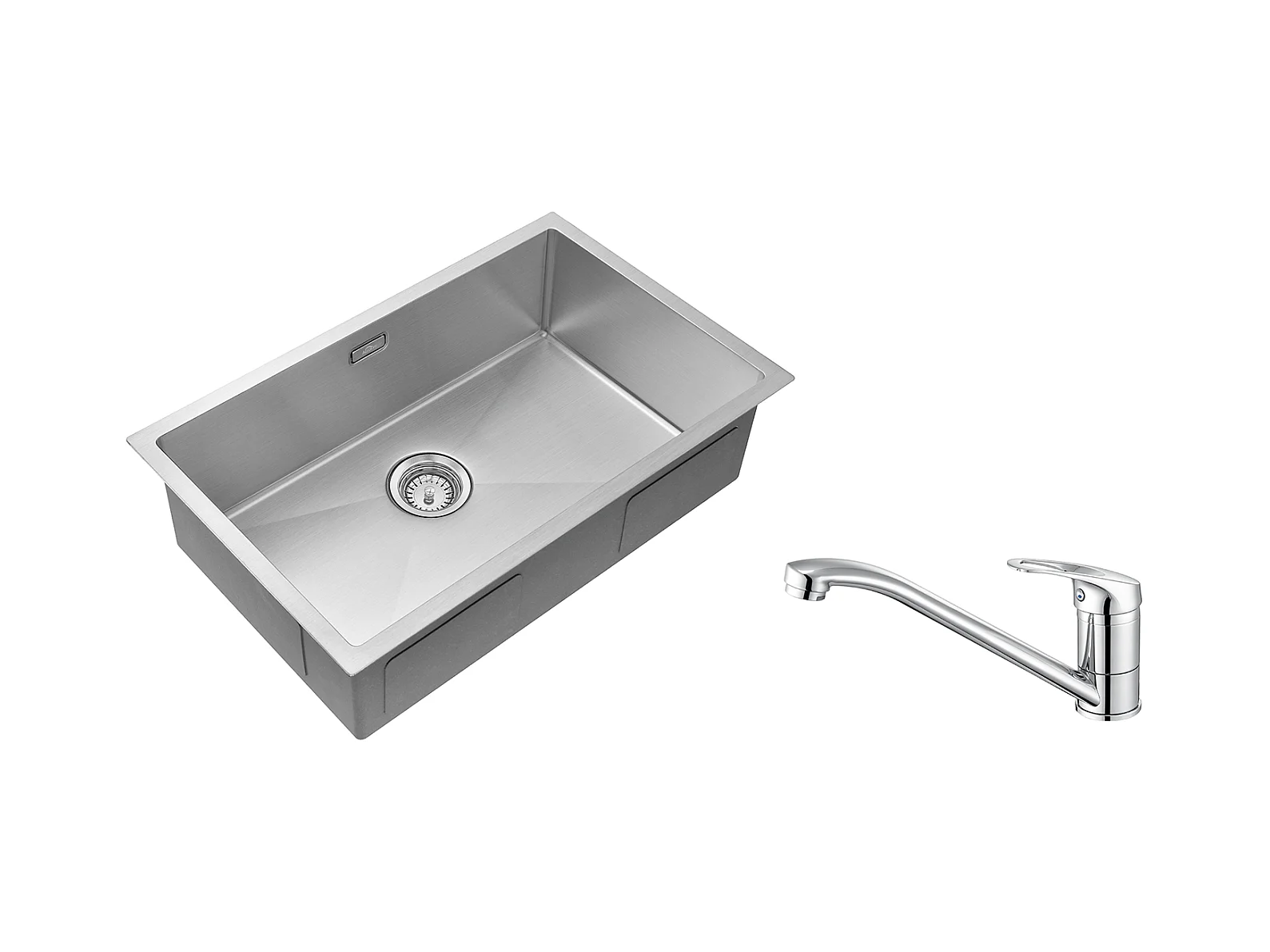 Évier Cuisine 1Bac 70*44*19CM,à Encastrer/Fleur/Sous-Plan,avec Siphon/Trop-Plein+MitigeurCuisine,Douchette Extractible,2 Modes,EauFroide/Chaude,Brossé