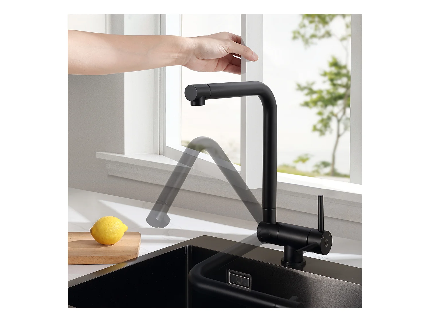 NETTLIFE Robinet de Cuisine avec Douchette Extractible Mitigeur Cuisine Bec Rotatif Mitigeur d'Évier haute pression avec 2 types de jets ,Noir