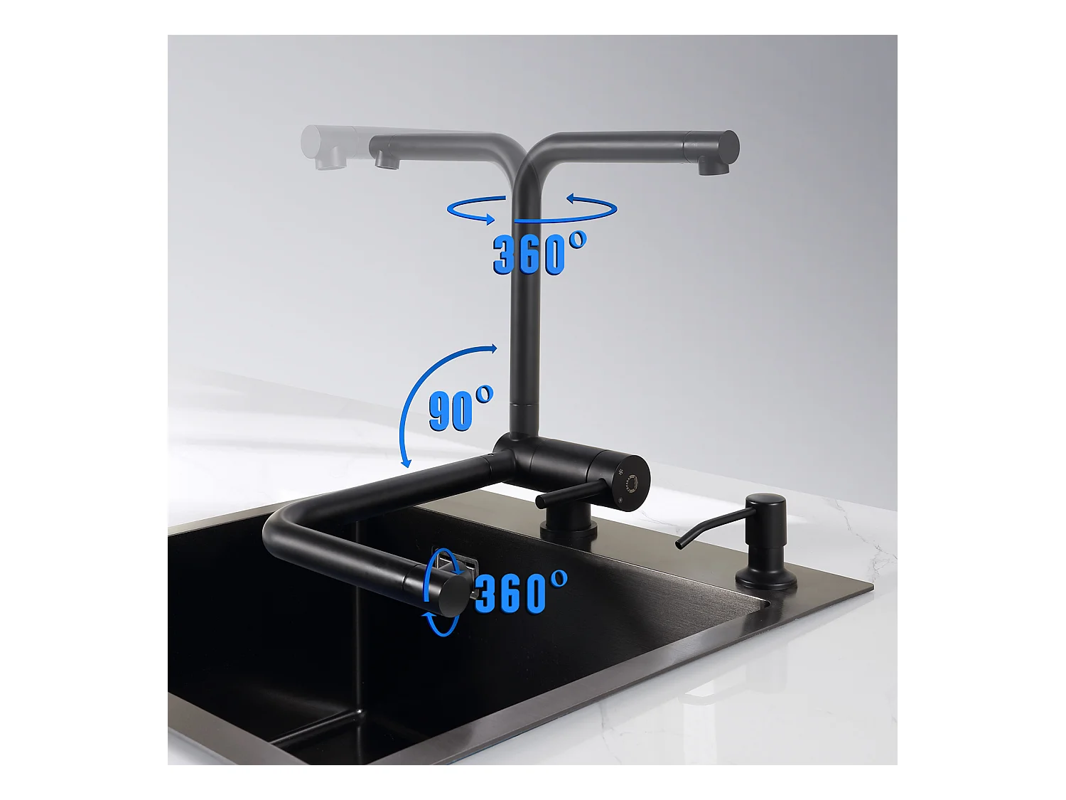 Cecipa max Robinet de Cuisine Rabattable 2 Jets aux Choix, Mitigeur Evier Repliable en Inox devant Fenêtre, Robinet Évier Pivotant à 360º,EU Modèle