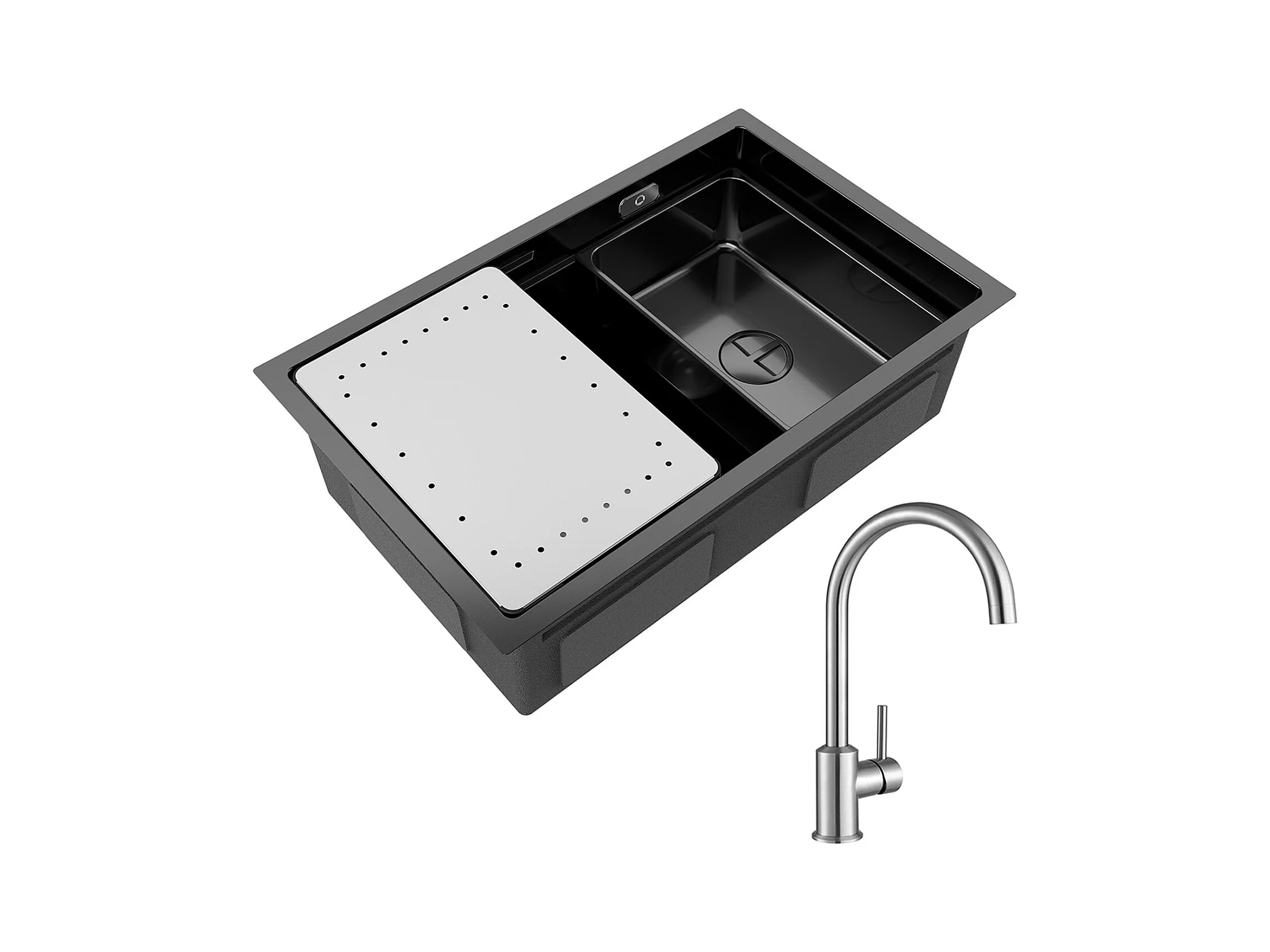Évier Cuisine 1 Bac 70×44×21CM Évier Inox Noir avec Egouttoir et Vasque + Mitigeur de Cuisine Rabattable Noir