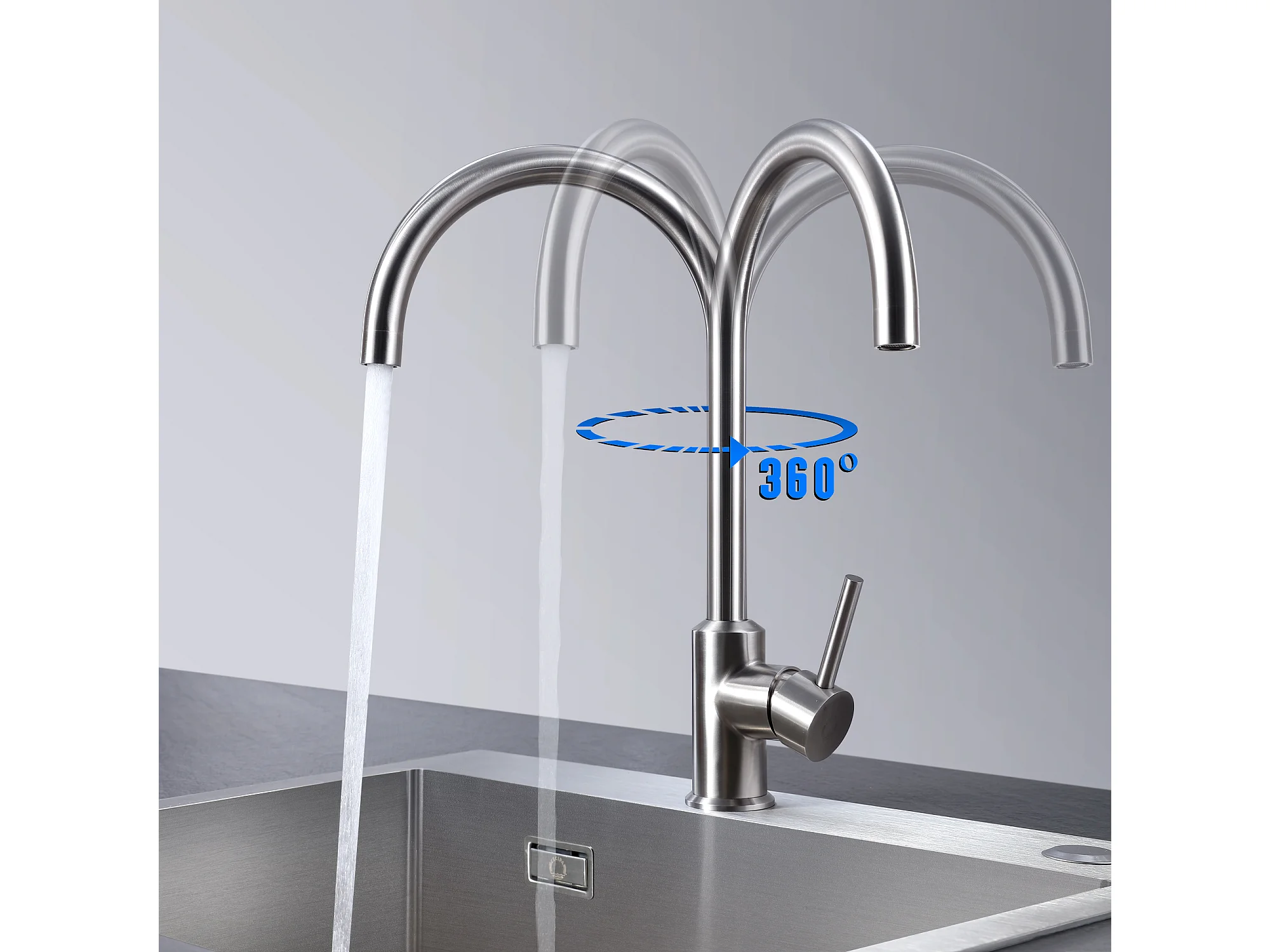 Robinet de cuisine extractible NETTLIFE - Mitigeur d'évier 360° avec douchette en acier inoxydable, 2 modes de pulvérisation
