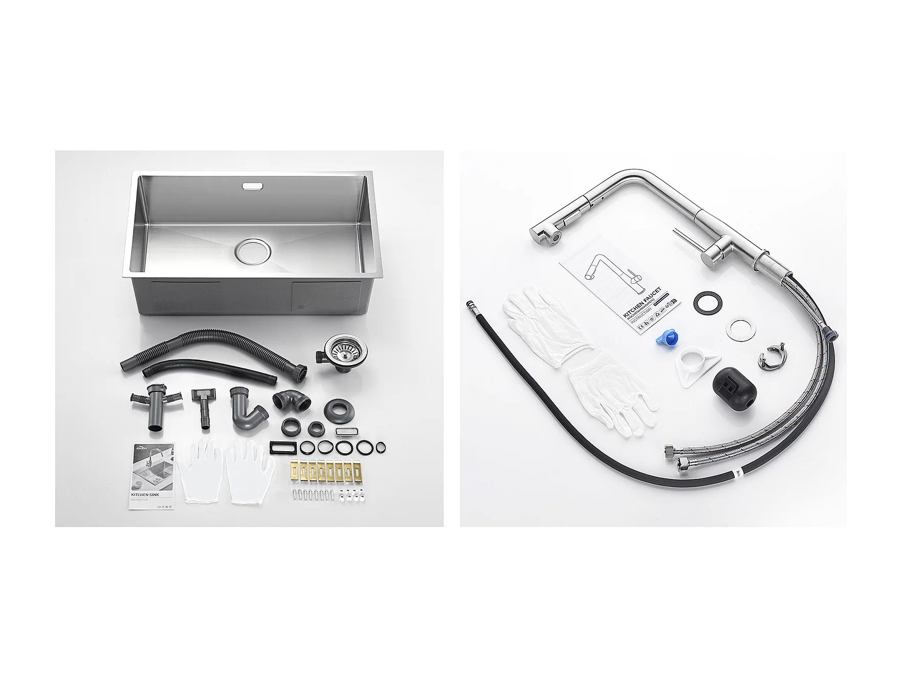Évier Cuisine 1 Bac 74*44*20CM 304 Inox Évier Brossé avec Siphon et Trop-Plein+Mitigeur Cuisine avec Douchette Extractible Rotatif 360°,Brossé
