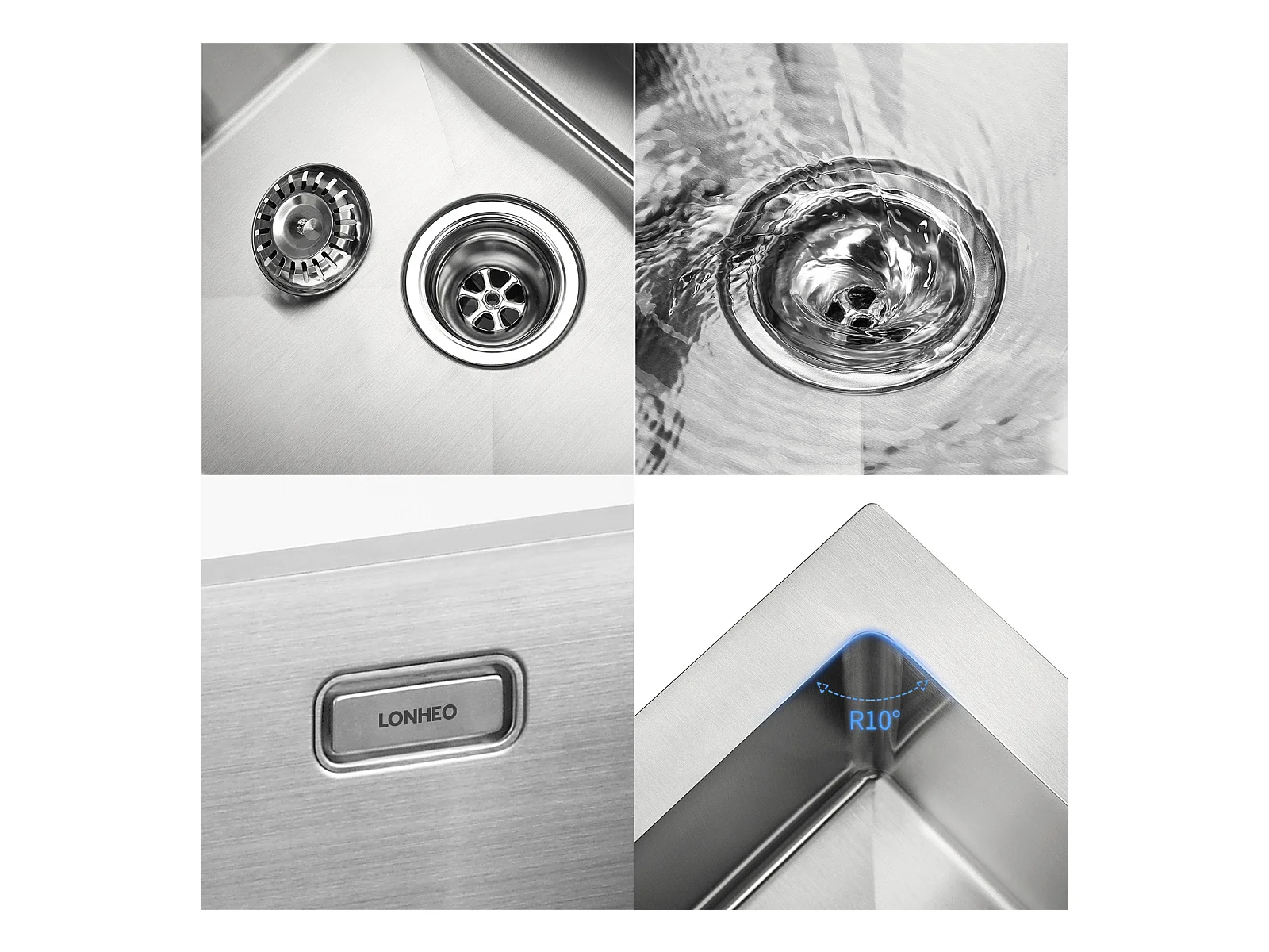 Lonheo Max Évier Cuisine 1 Bac 74*44*20CM Évier Brossé Montage à Encastrer/Fleur/Sous-Plan en Acier Inoxydable 304 avec Système de Drainage,EU Modèle