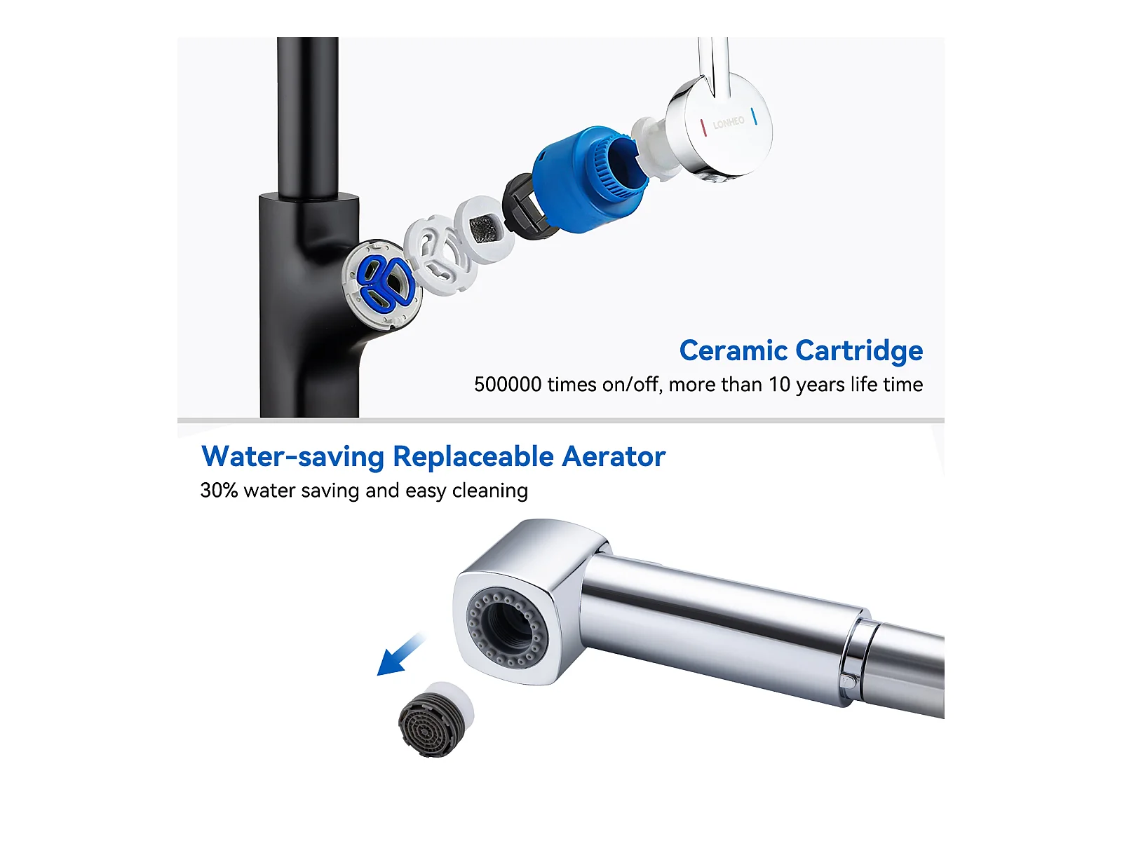 NETTLIFE Robinet de cuisine avec pomme de douche extensible, à haute pression, en acier inoxydable à jet double et pivotant à 360 °, Nickel