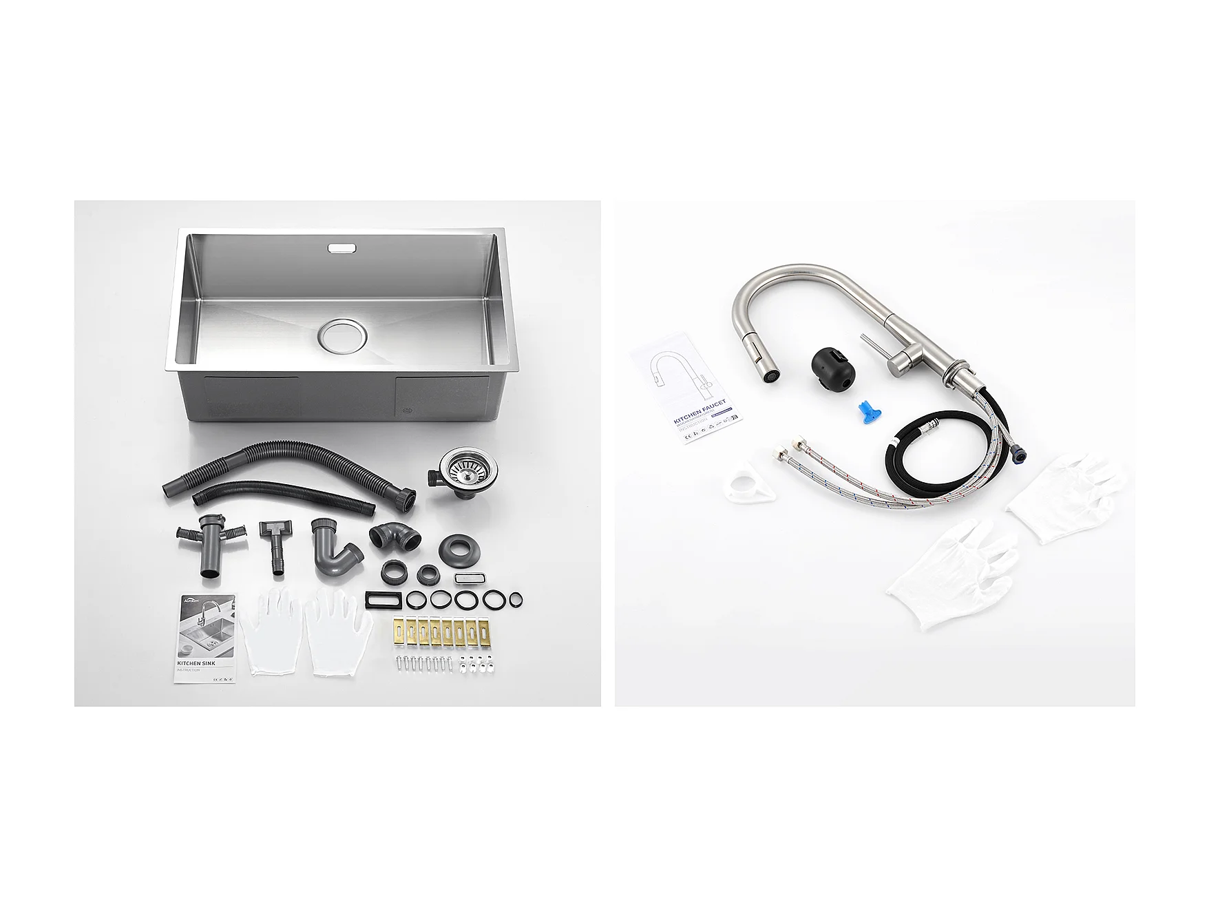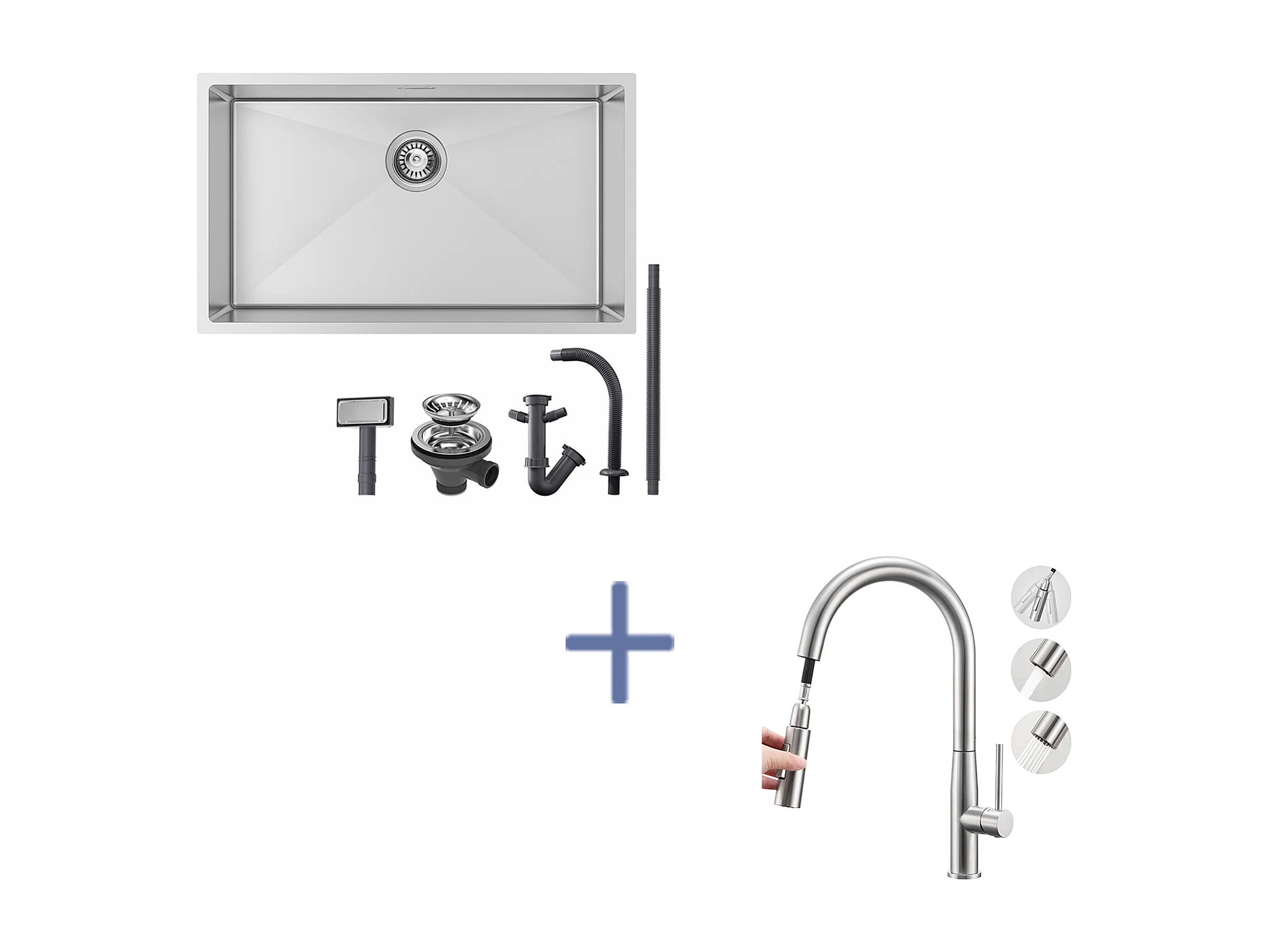 Évier Cuisine 1 Bac 74*44*20CM,Inox,avec Siphon et Trop-Plein+Mitigeur de Cuisine,avec Douchette Extractible,2 Modes,Eau Froide/Chaude,Brossé