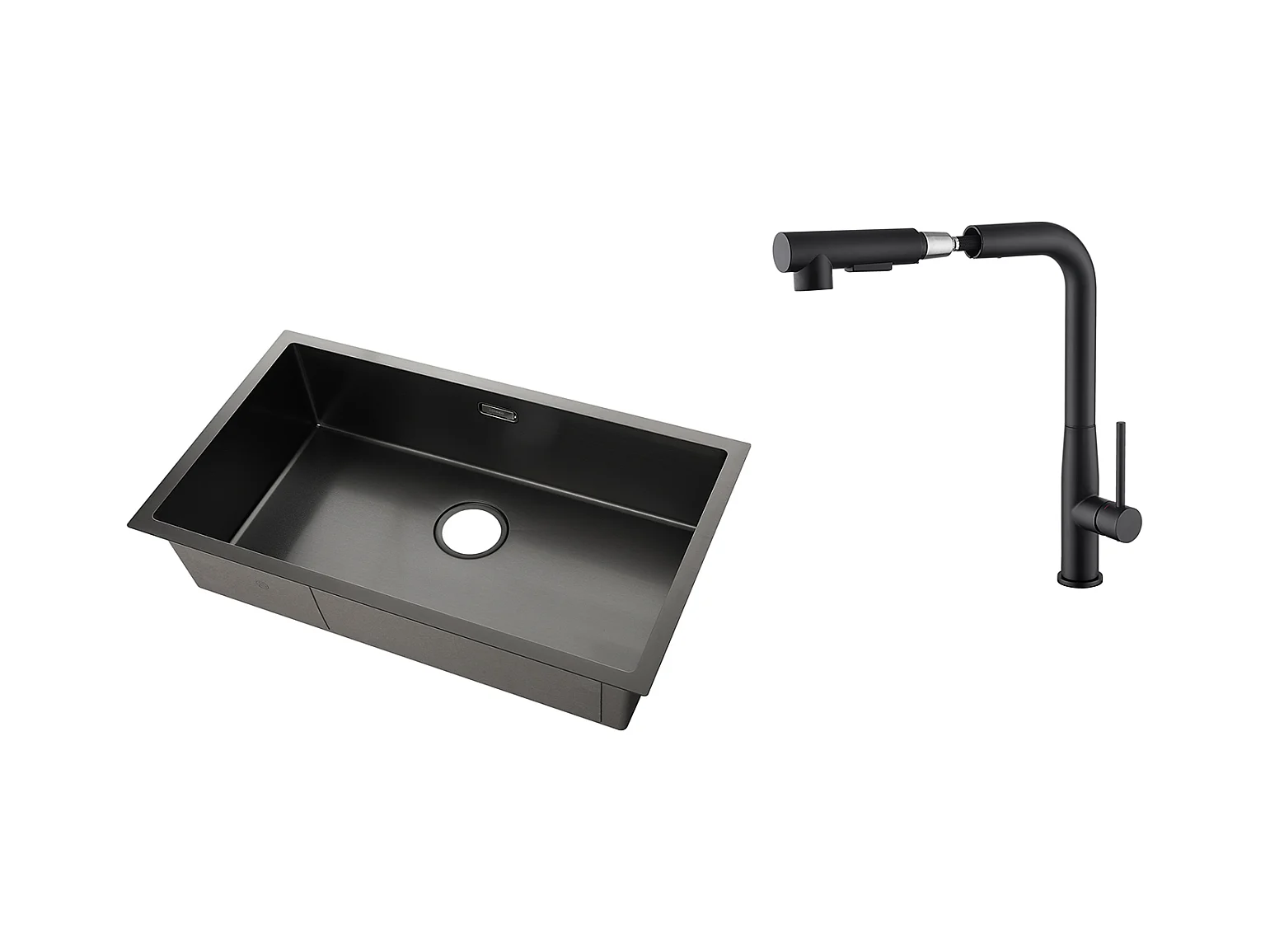 Évier Cuisine 1 Bac 74*44*20CM,en Inox Brossé avec Siphon et Trop-Plein+robinet de cuisine rétractable à deux fonctions, Noir