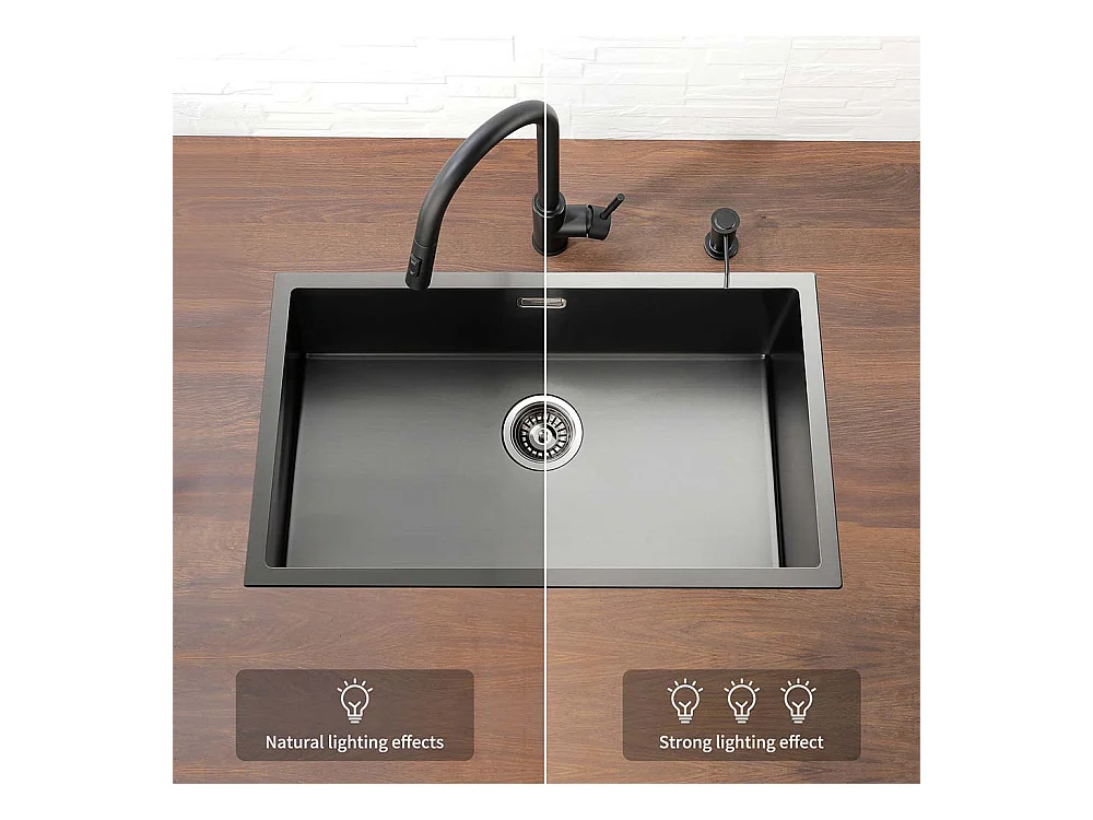LONHEO MAX Évier Cuisine 1 Bac 74*44*20CM,en Inox Brossé avec Siphon et Trop-Pleinn,Noir