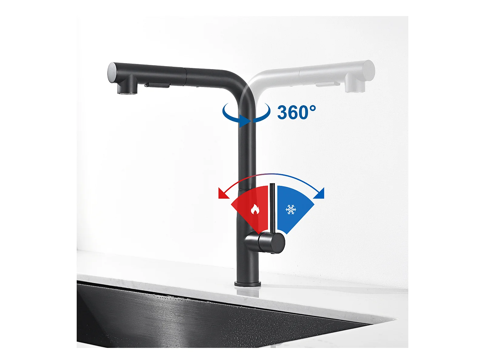 Robinet de cuisine en acier inoxydable - Noir mat - ROFILA