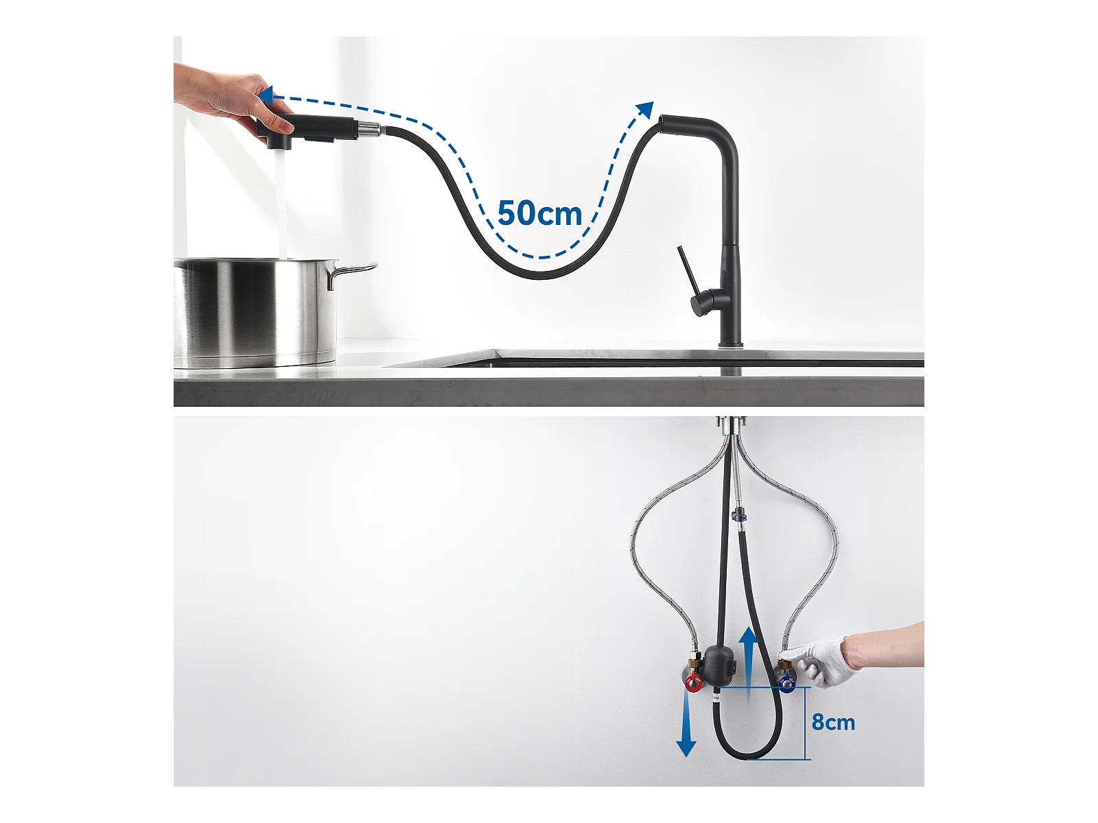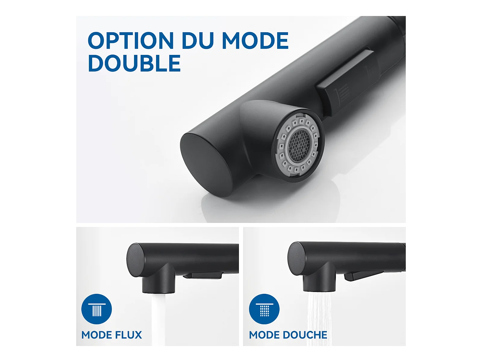 Robinet Cuisine Flexible Robinet avec 2 Types de Jets, Mitigeur Cuisine Rabattable, Flexible Mitigeur Evier avec Eau Chaude et Froide - Noir + Brossé