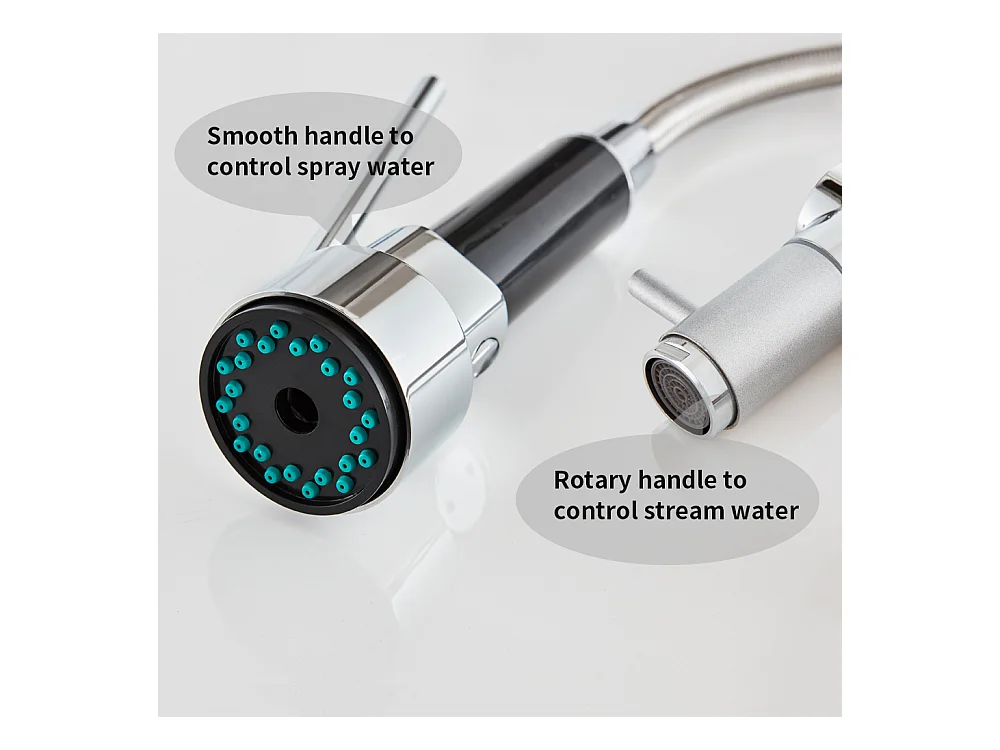 Robinet de cuisine avec douchette extractible en acier inoxydable - Noir mat - ROFLEX
