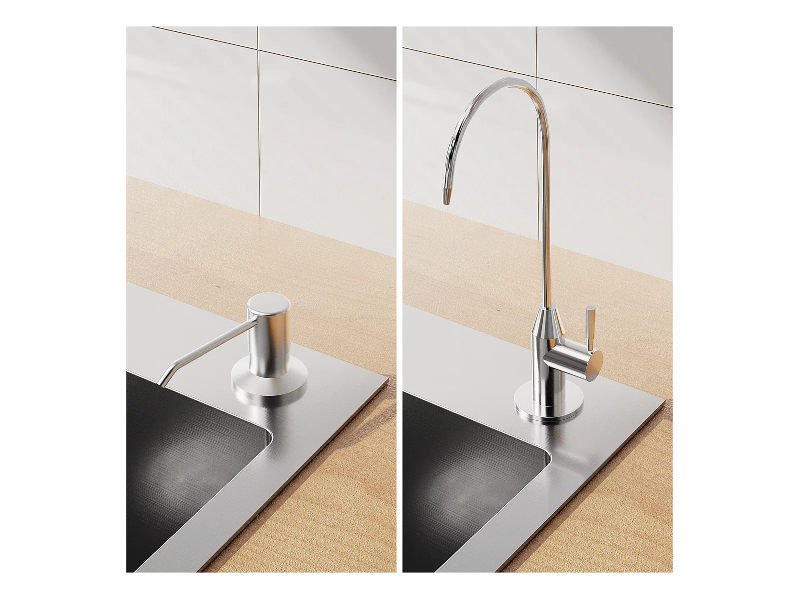 Évier Cuisine 2 Bac 75x45x19cm,Encastré/ à Poser avec Distributeur Savon+Robinet Cuisine,Orientable à 360°,Eau Chaude/Froide,en Laiton,Chromé