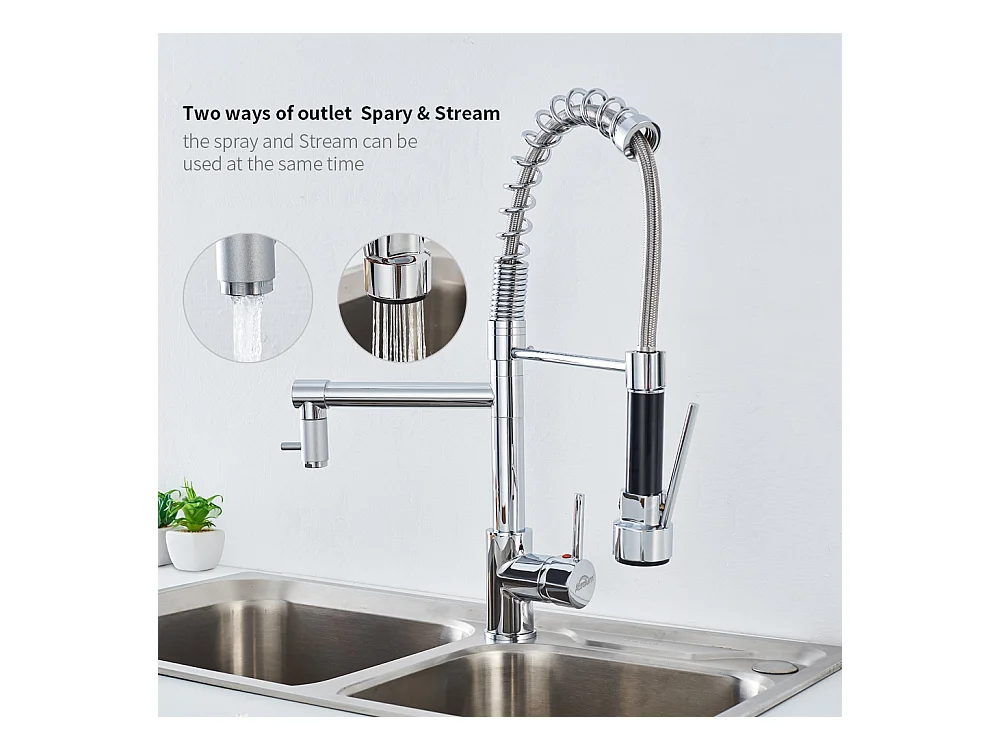 Cecipa max Robinet de Cuisine Rabattable 2 Jets aux Choix, Mitigeur Evier Repliable en Inox devant Fenêtre, Robinet Évier Pivotant à 360º,EU Modèle