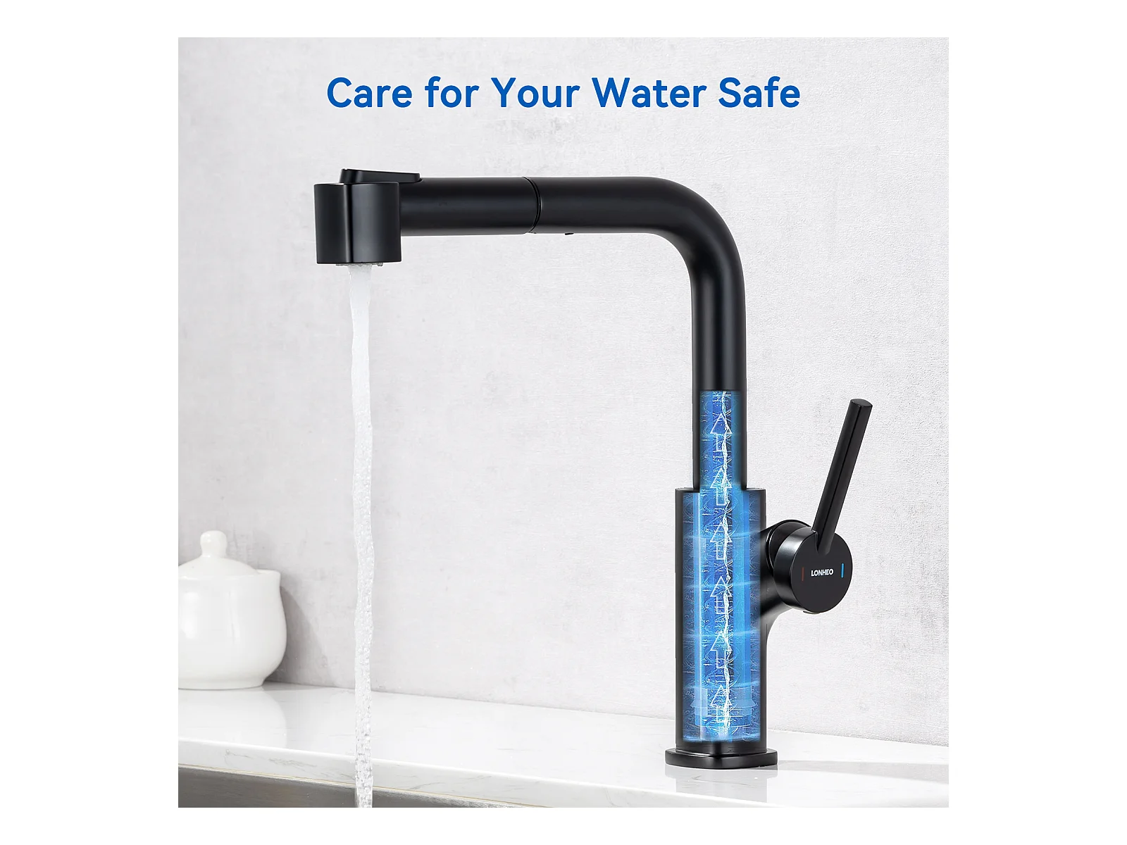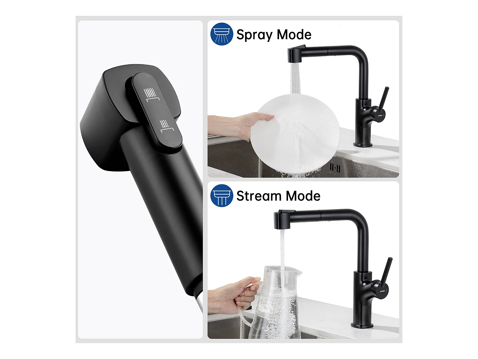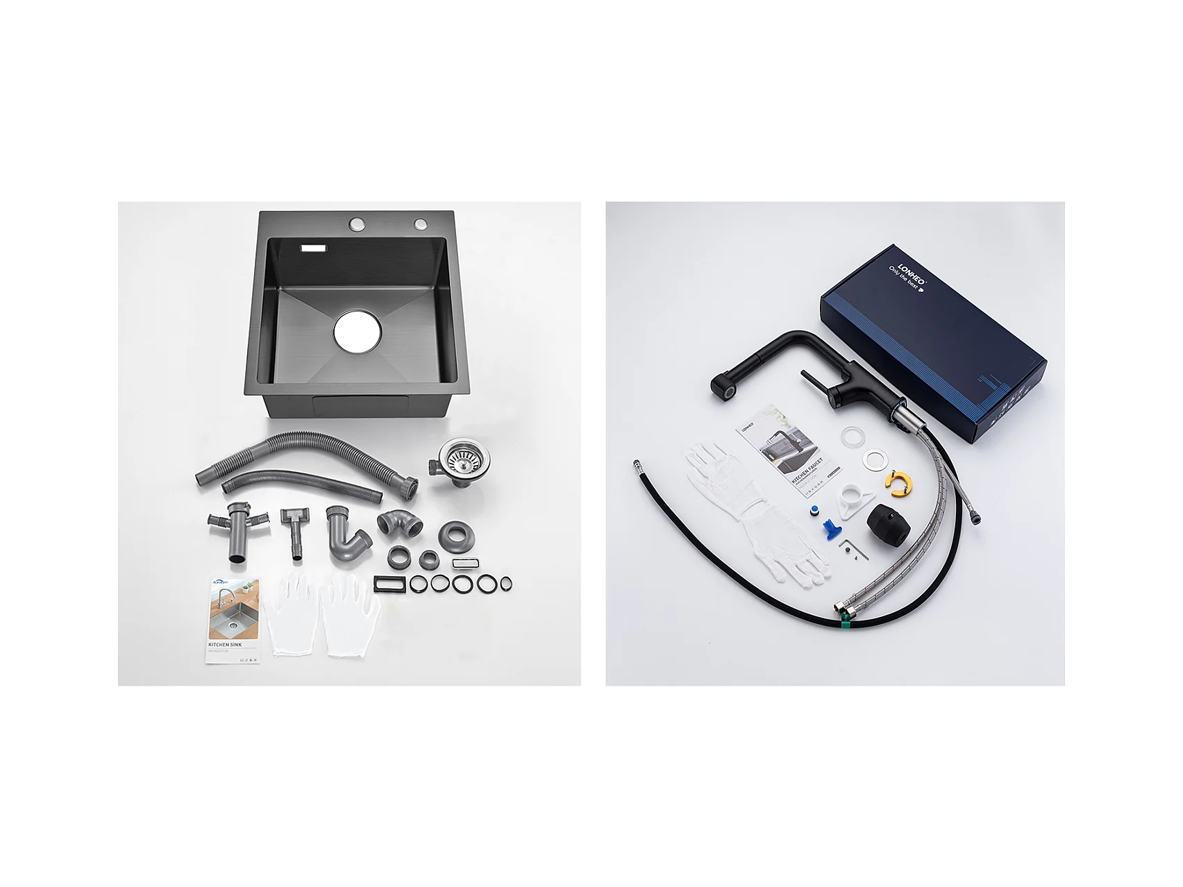 Évier Cuisine Noir  1 Bac 45x45CM Acier Inoxydable 304 ,encastré et à Poser+ Robinet de Cuisine Noir avec Douchette Extractible