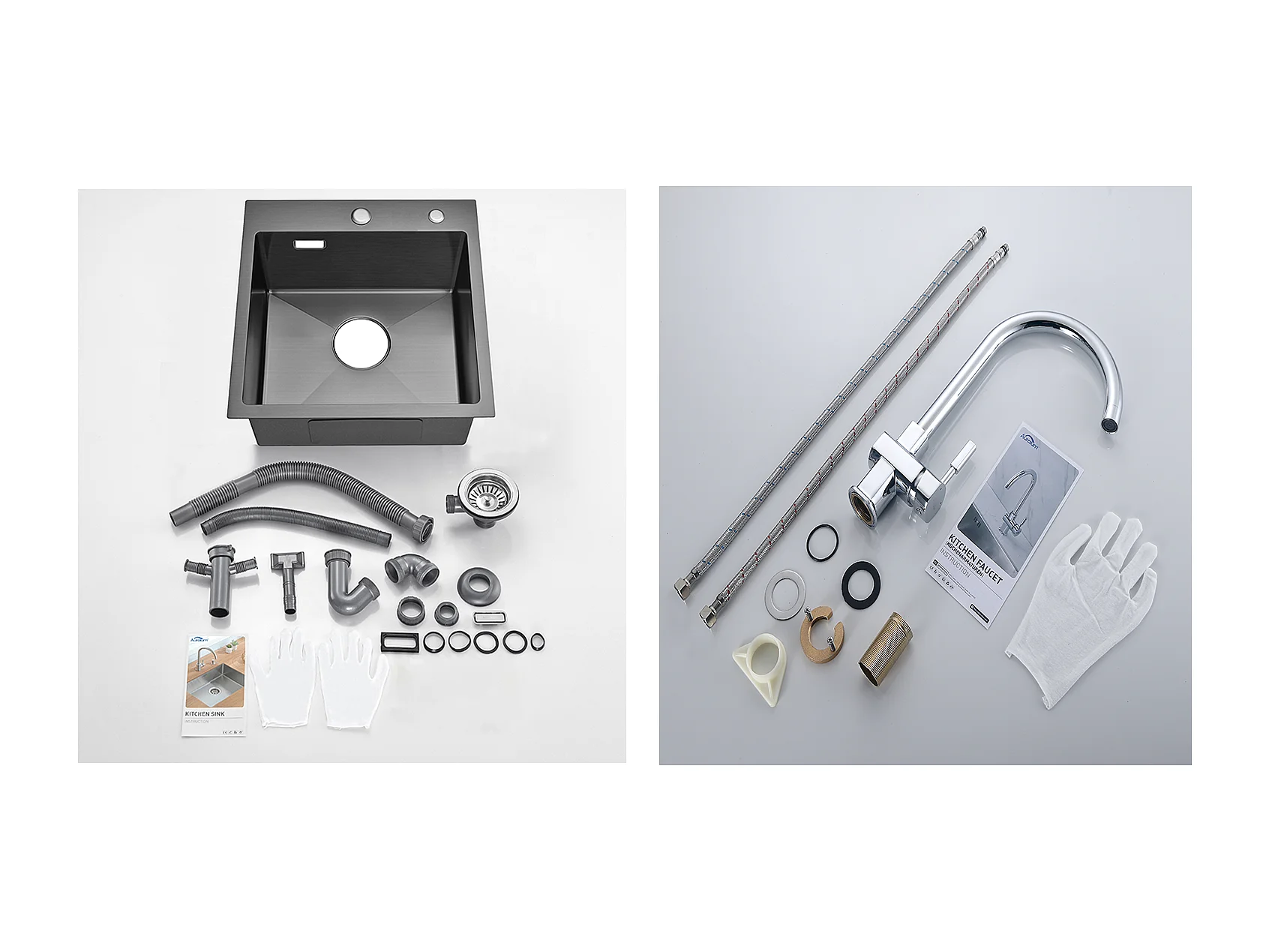 Évier Cuisine Noir 1 Bac 45x45CM Acier Inoxydable 304 ,encastré et à Poser+Mitigeur Cuisine en Acier Inox 304 Rabattable Pivotant à 3,EU Modèle