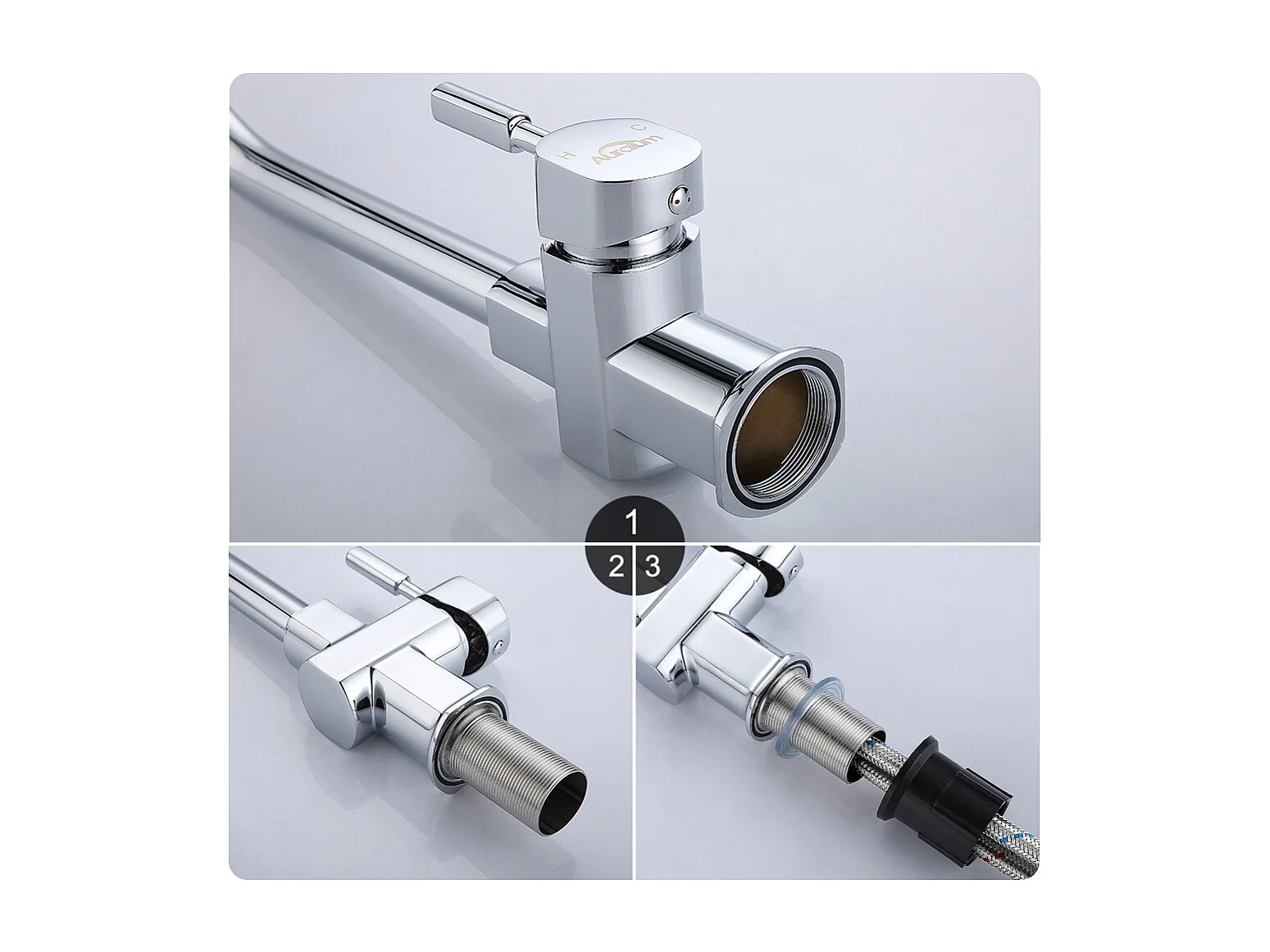 Mitigeur de Cuisine Rabattable, Pivotant à 360°,Robinet de Cuisine avec Poignée Pliable Contre Fenêtre, Robinet Mitigeur Evier Acier Inox 304
