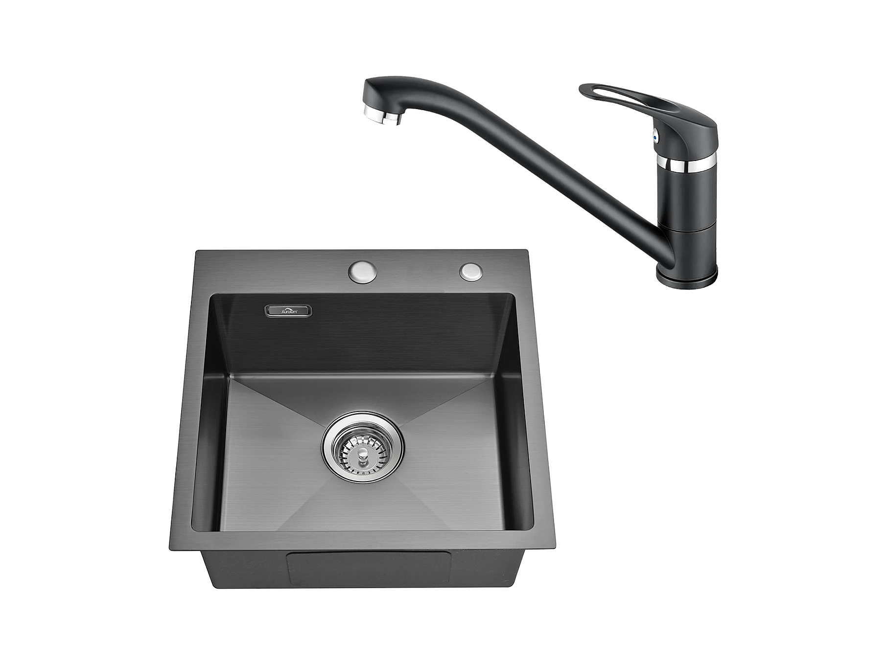 Évier Cuisine Noir 1 Bac 45x45CM Acier Inoxydable 304 ,encastré et à Poser+Mitigeur Cuisine en Acier Inox 304 Rabattable Pivotant à 3,EU Modèle