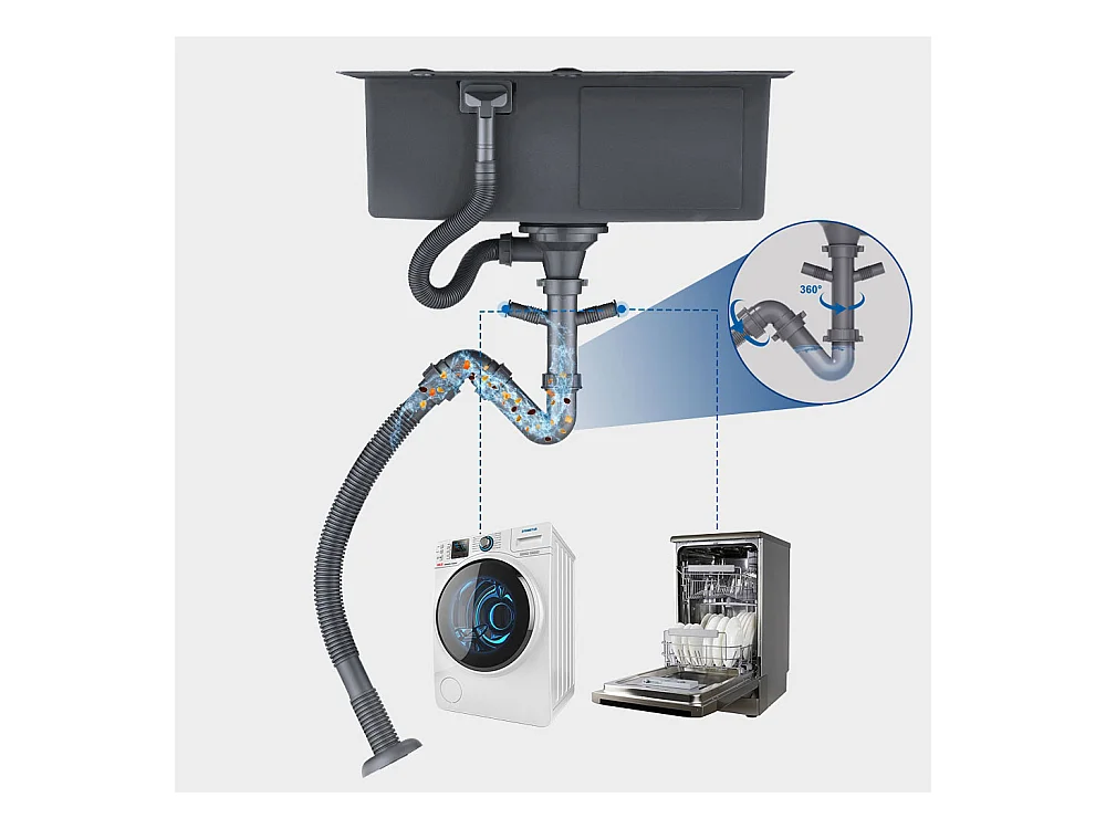 2 en 1 Évier de Cuisine Noir 68x45x19CM avec Distrubuteur de savon et Égouttoir panier +Mitigeur Cuisine Rabattable Pivotant 360°