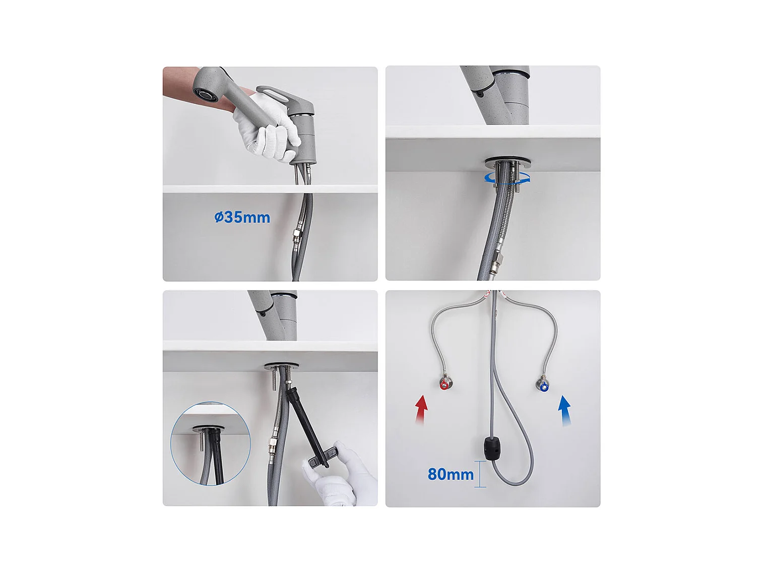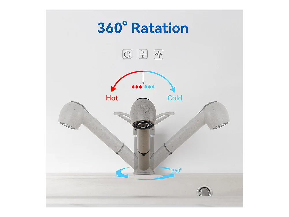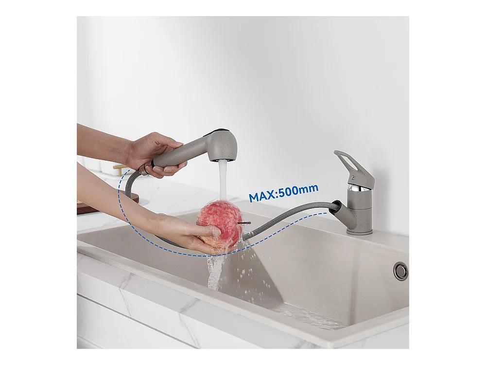 Robinet de cuisine extractible NETTLIFE - Mitigeur d'évier 360° avec douchette en acier inoxydable, 2 modes de pulvérisation