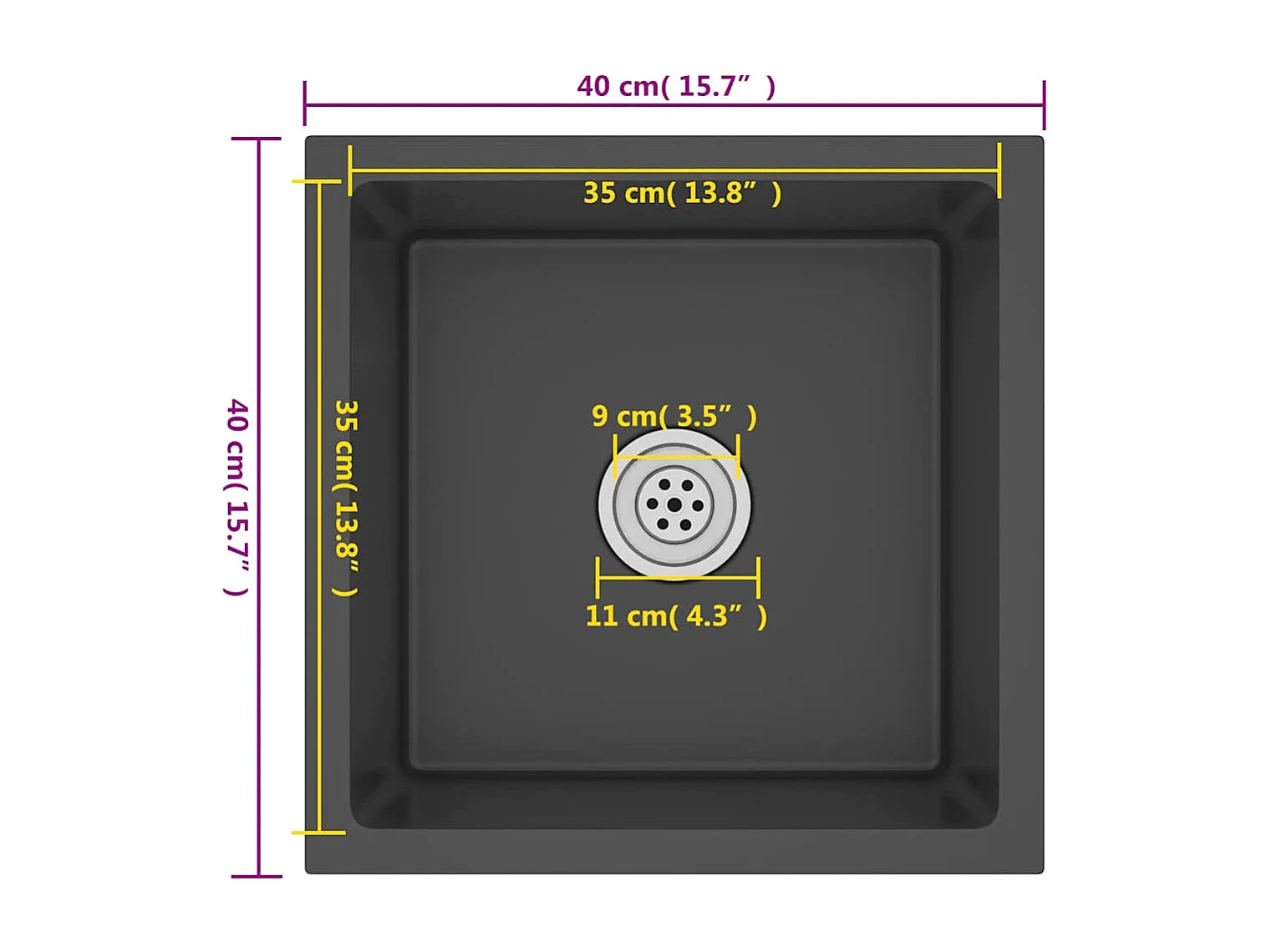Évier de cuisine fait à la main Noir Acier inoxydable