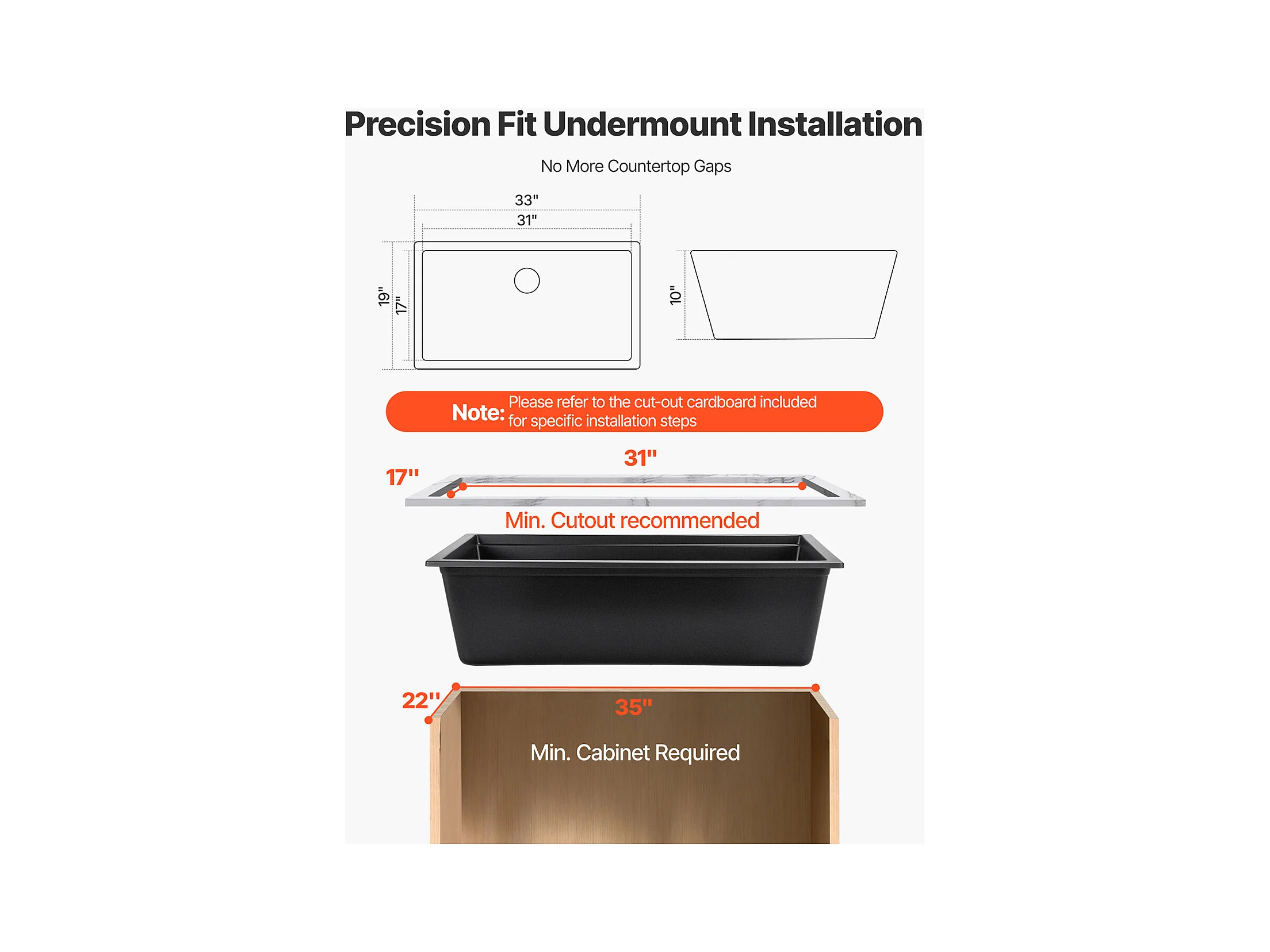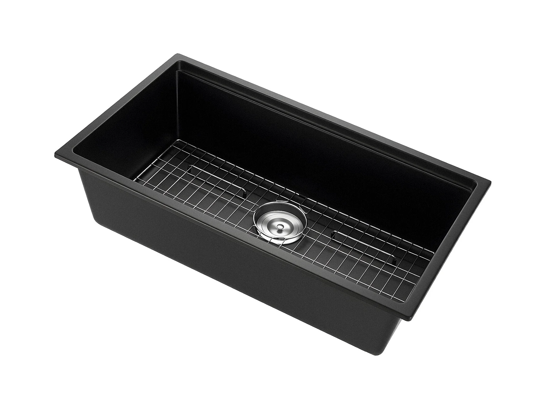 Évier de Cuisine SucceBuy Moderne en Granit de 83,8 cm, Évier sous Plan à Large Cuve Simple, Bac à Laver avec Accessoires Multiples, Nettoyage Facile