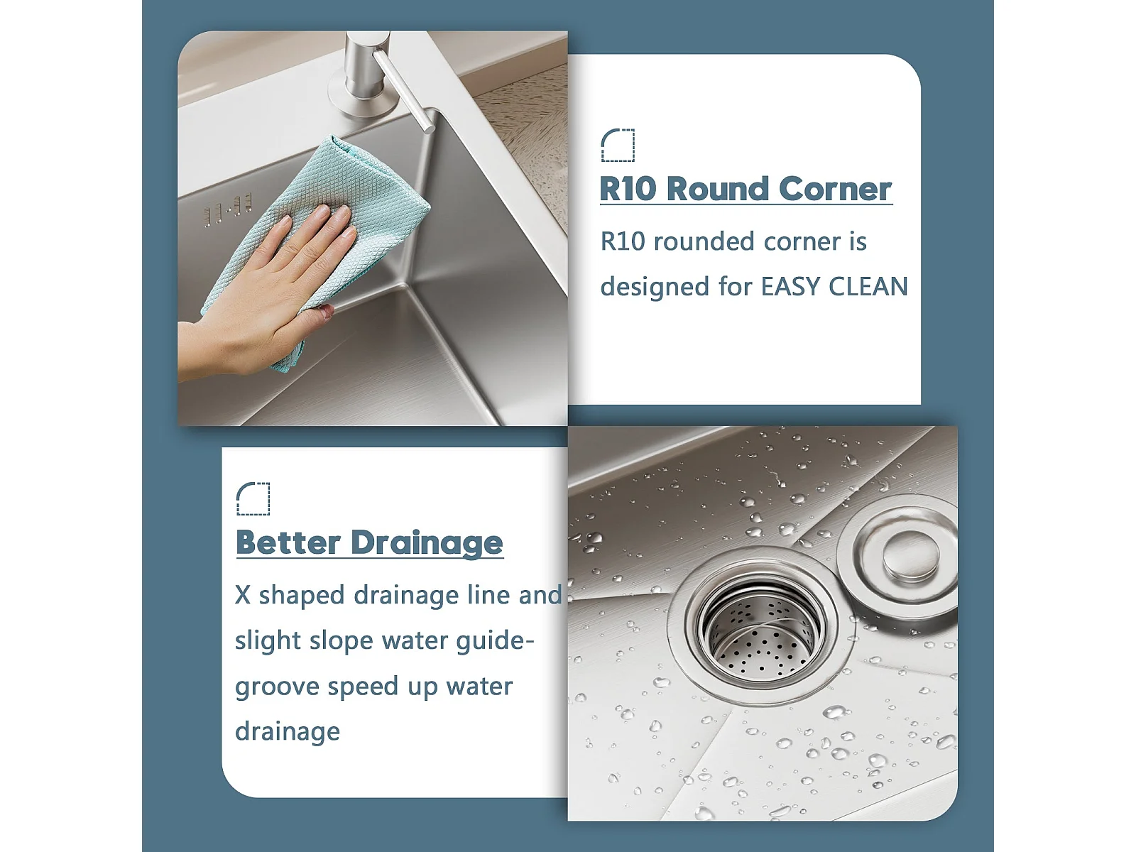 Évier de cuisine SucceBuy Évier de cuisine 70 cm, Cuve Simple Encastrée Sous Plan, Acier Inoxydable