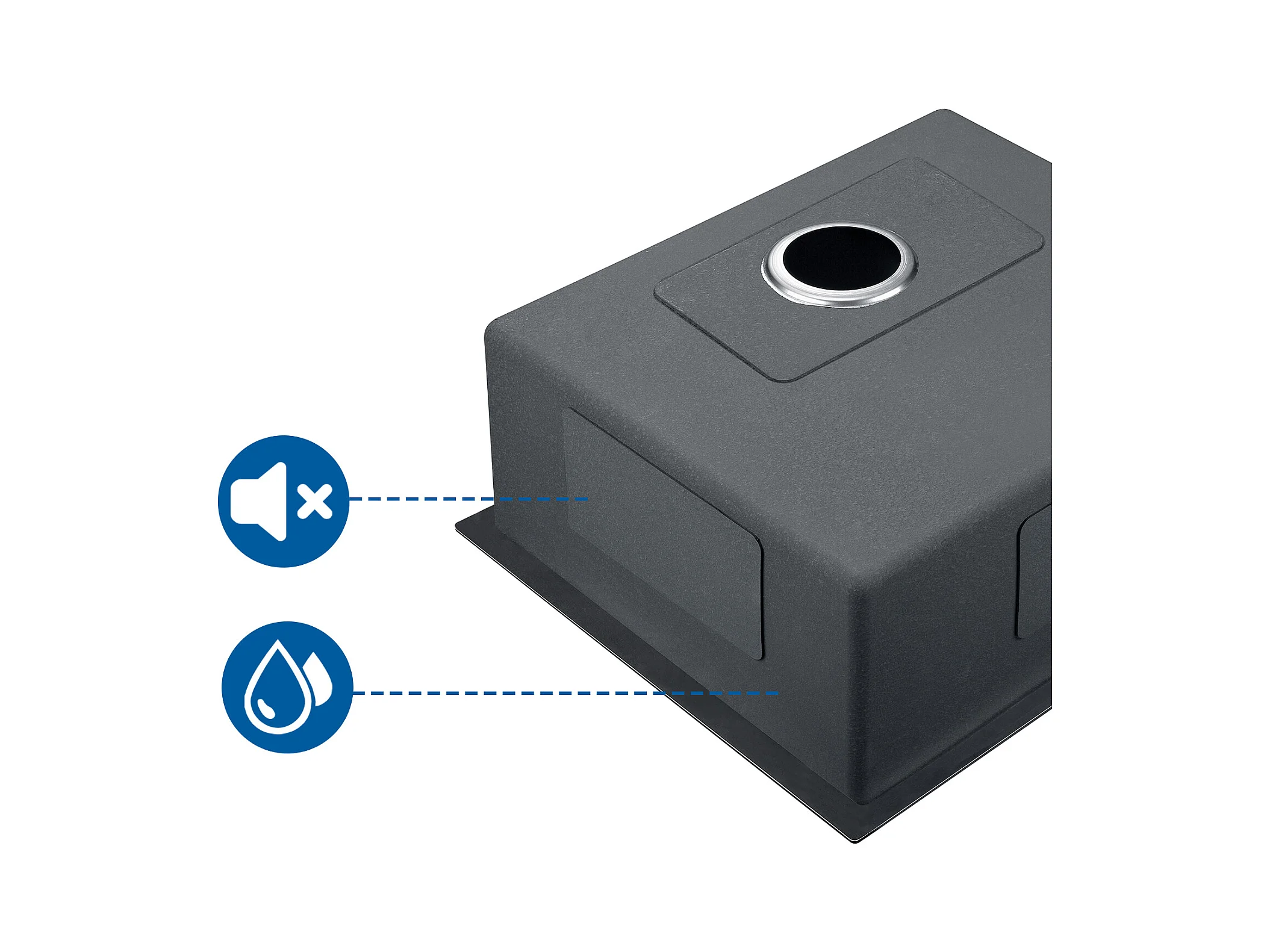 Évier Noir 1 Bac 50x43x18,5CM,Acier Inoxydable, avec Distrubuteur de savon + Robinet de Cuisine Inox Extractible Rotatif à 360 °