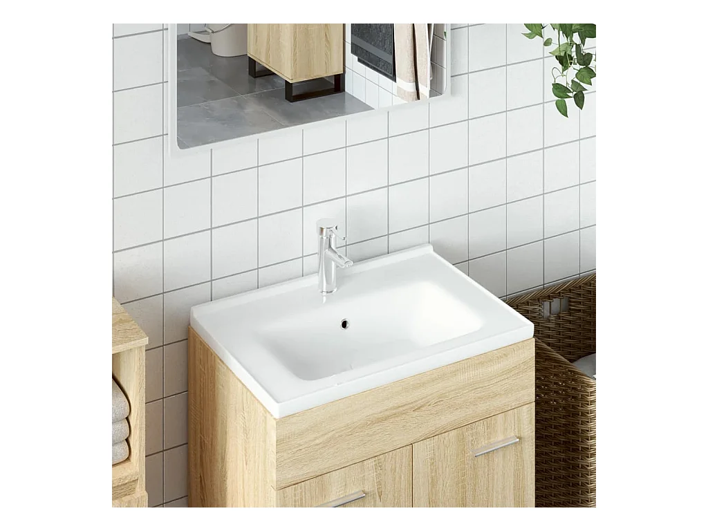 Évier de salle de bain blanc 71x48x23cm rectangulaire céramique