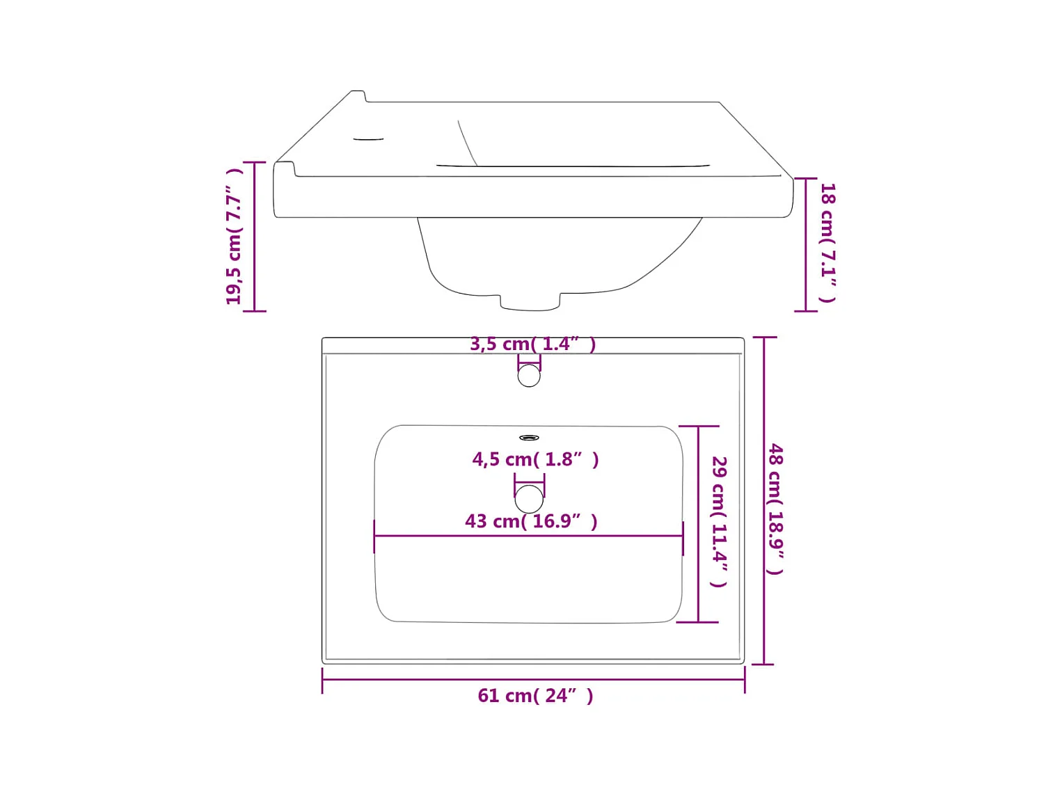 Lavabo encastré 61 x 39,5 x 18,5 cm Céramique Blanc