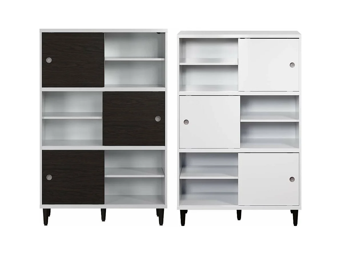 Evolution bibliothèque 2 portes, 4 étagères blanc, noir.
